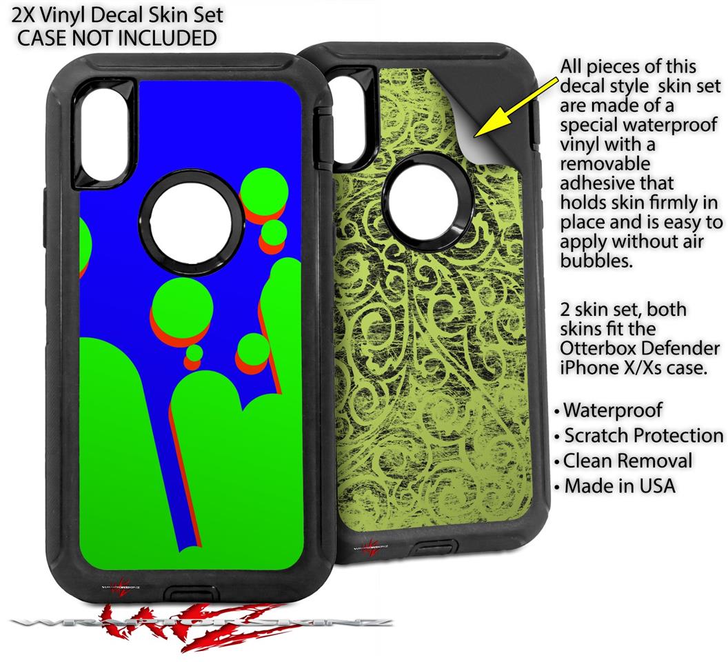 2x Decal style Skin Wrap Set compatible with Otterbox Defender iPhone X and Xs Case - Drip Blue Green Red (CASE NOT INCLUDED)