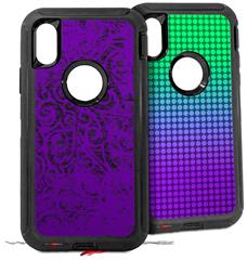 2x Decal style Skin Wrap Set compatible with Otterbox Defender iPhone X and Xs Case - Folder Doodles Purple (CASE NOT INCLUDED)