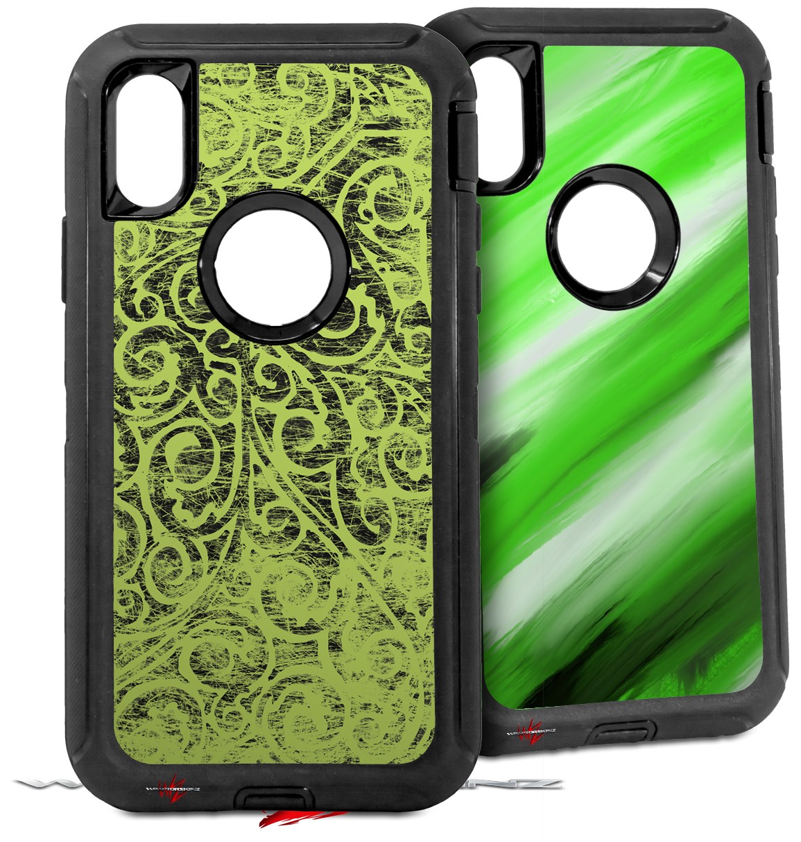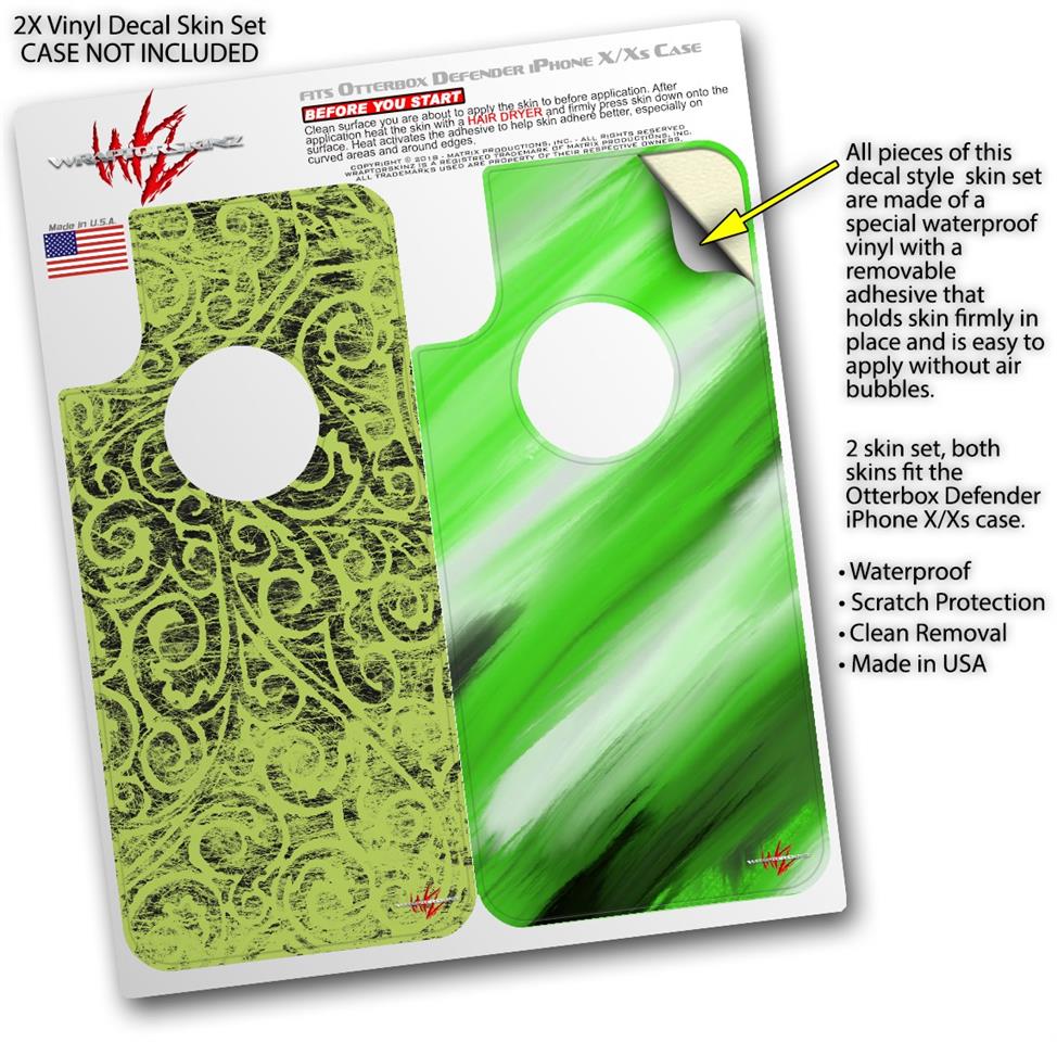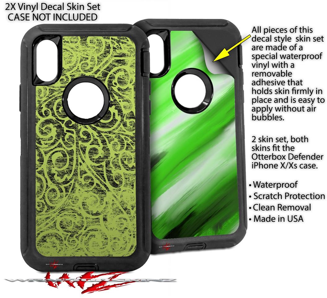 2x Decal style Skin Wrap Set compatible with Otterbox Defender iPhone X and Xs Case - Folder Doodles Sage Green (CASE NOT INCLUDED)