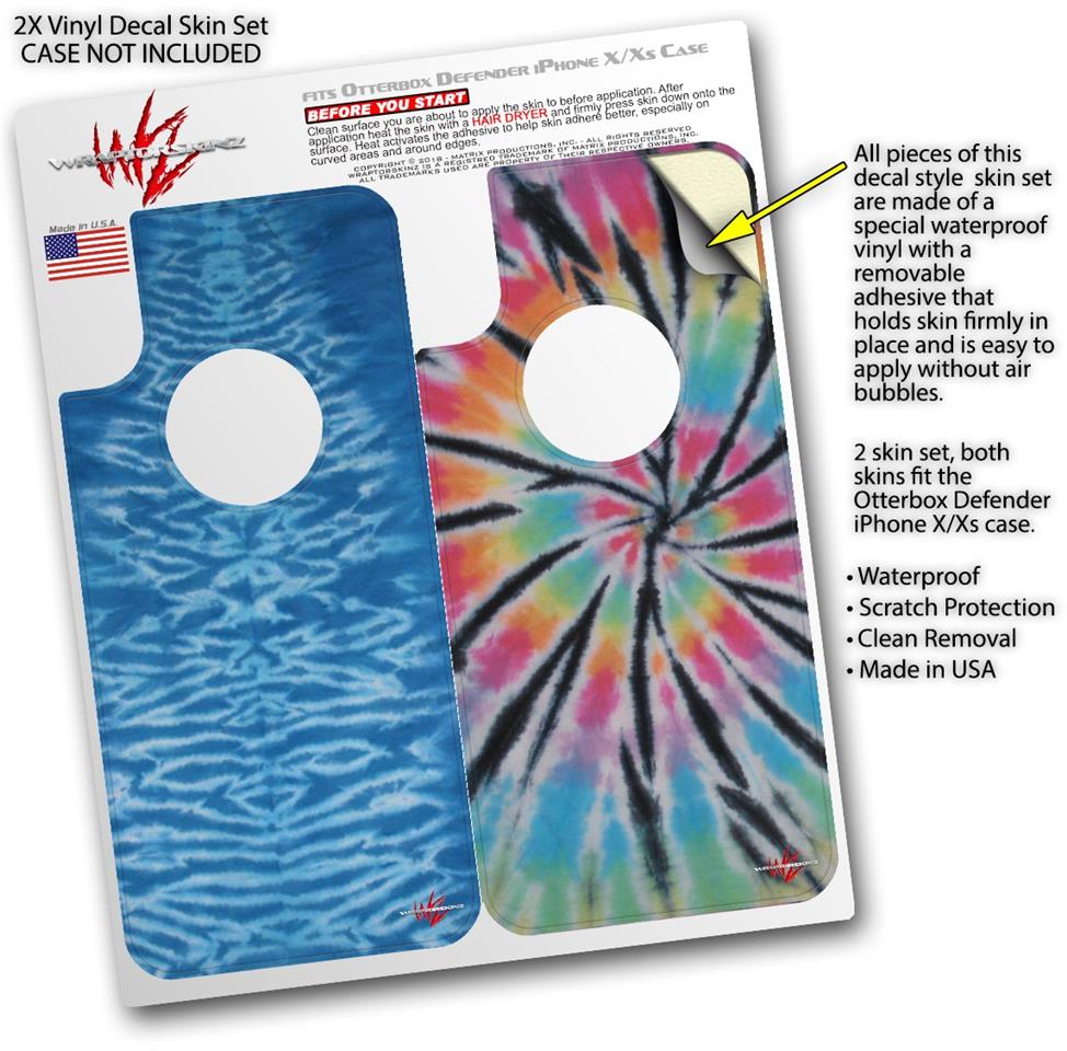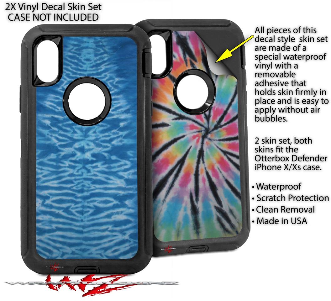 2x Decal style Skin Wrap Set compatible with Otterbox Defender iPhone X and Xs Case - Tie Dye Spine 103 (CASE NOT INCLUDED)