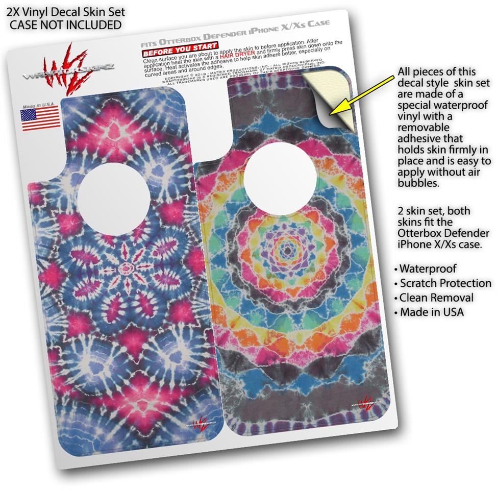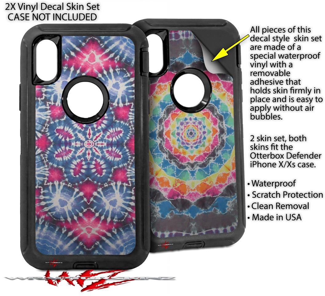 2x Decal style Skin Wrap Set compatible with Otterbox Defender iPhone X and Xs Case - Tie Dye Star 102 (CASE NOT INCLUDED)