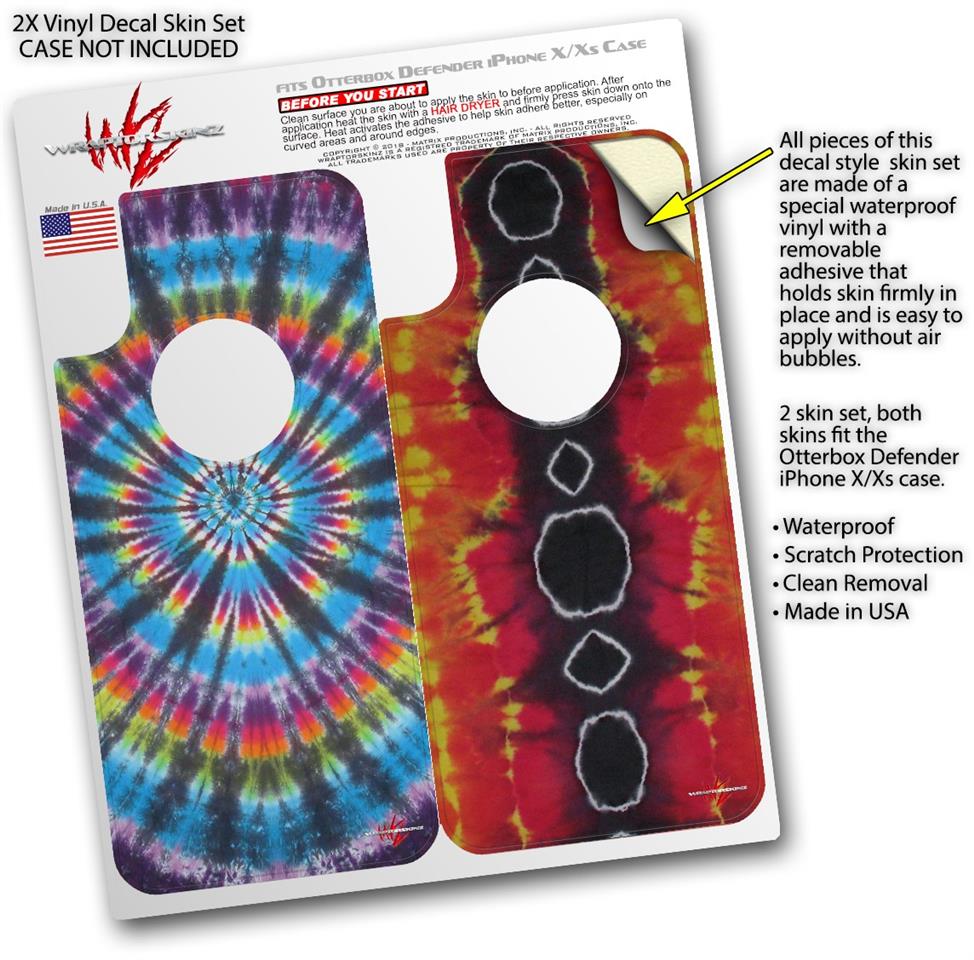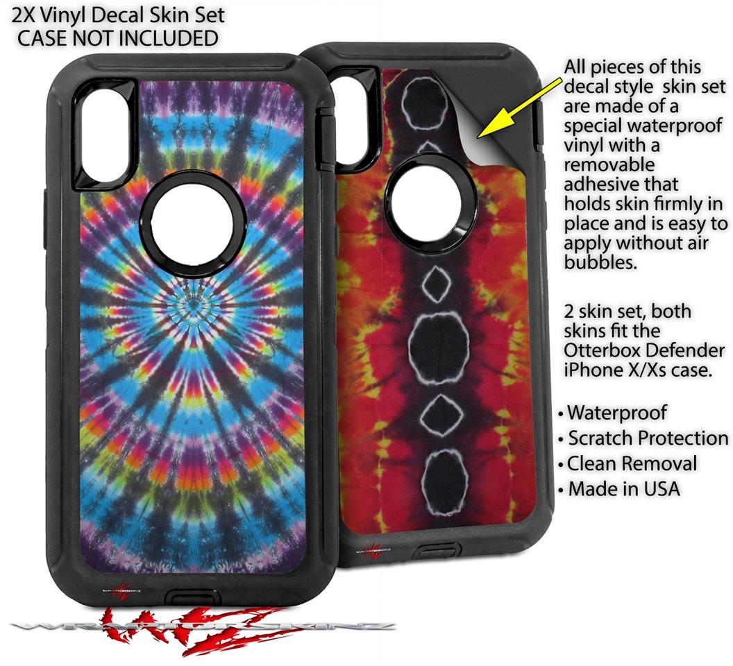2x Decal style Skin Wrap Set compatible with Otterbox Defender iPhone X and Xs Case - Tie Dye Swirl 101 (CASE NOT INCLUDED)
