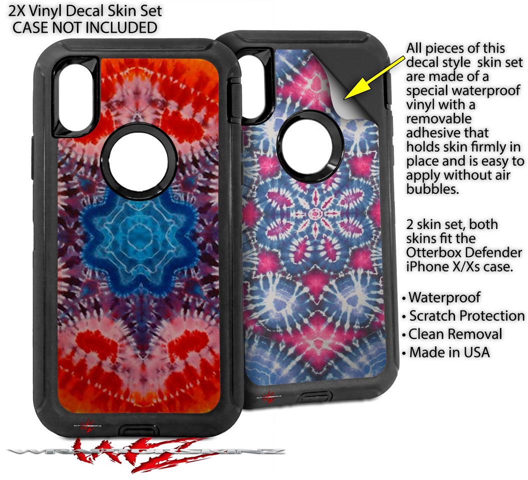 2x Decal style Skin Wrap Set compatible with Otterbox Defender iPhone X and Xs Case - Tie Dye Star 100 (CASE NOT INCLUDED)