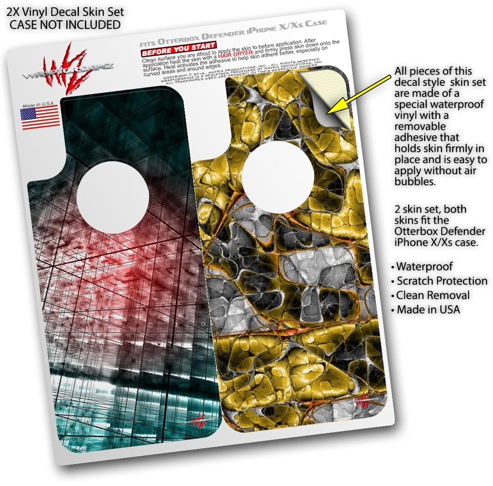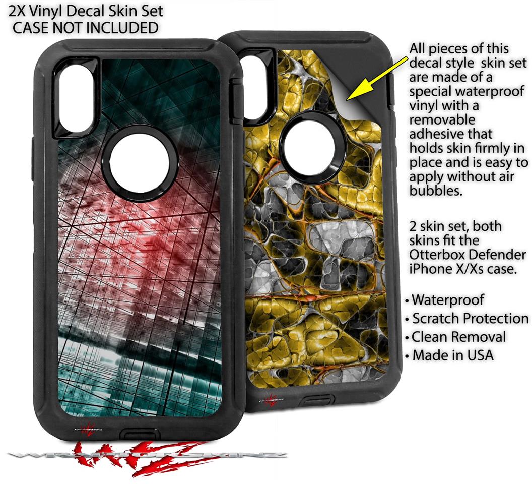 2x Decal style Skin Wrap Set compatible with Otterbox Defender iPhone X and Xs Case - Crystal (CASE NOT INCLUDED)