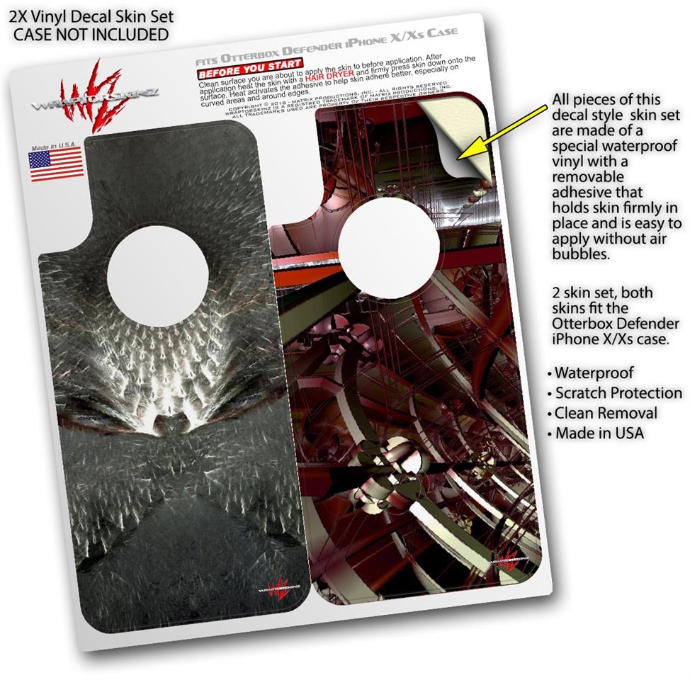 • CASE NOT INCLUDED - 2 Skins cover back surface of 2 Otterbox Defender iPhone X / Xs cases as pictured.