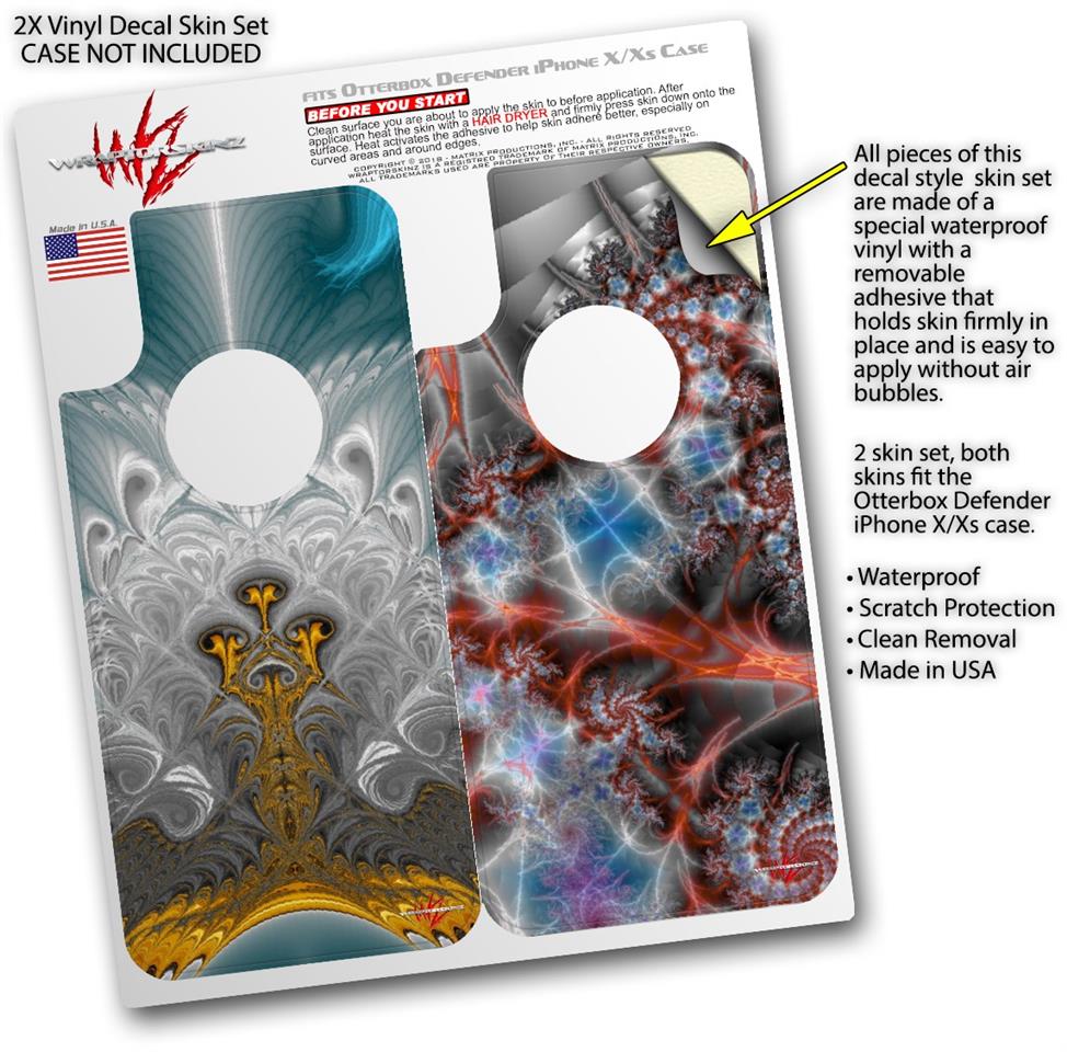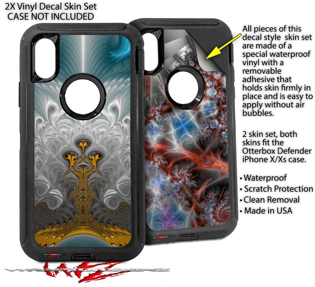 • CASE NOT INCLUDED - 2 Skins cover back surface of 2 Otterbox Defender iPhone X / Xs cases as pictured.