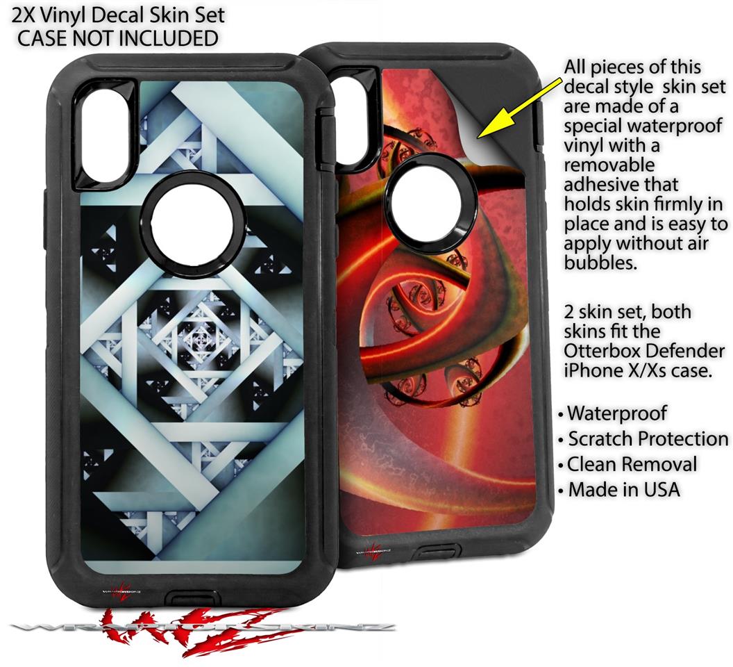 2x Decal style Skin Wrap Set compatible with Otterbox Defender iPhone X and Xs Case - Hall Of Mirrors (CASE NOT INCLUDED)