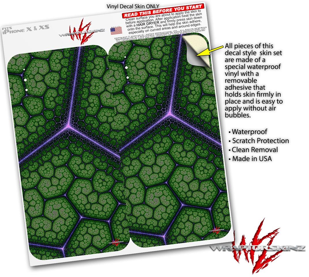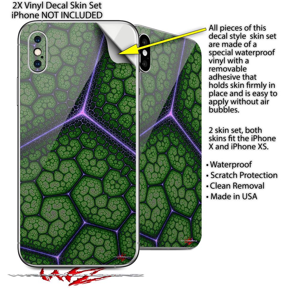 2 Decal style Skin Wraps set compatible with Apple iPhone X and XS Linear Cosmos Green
