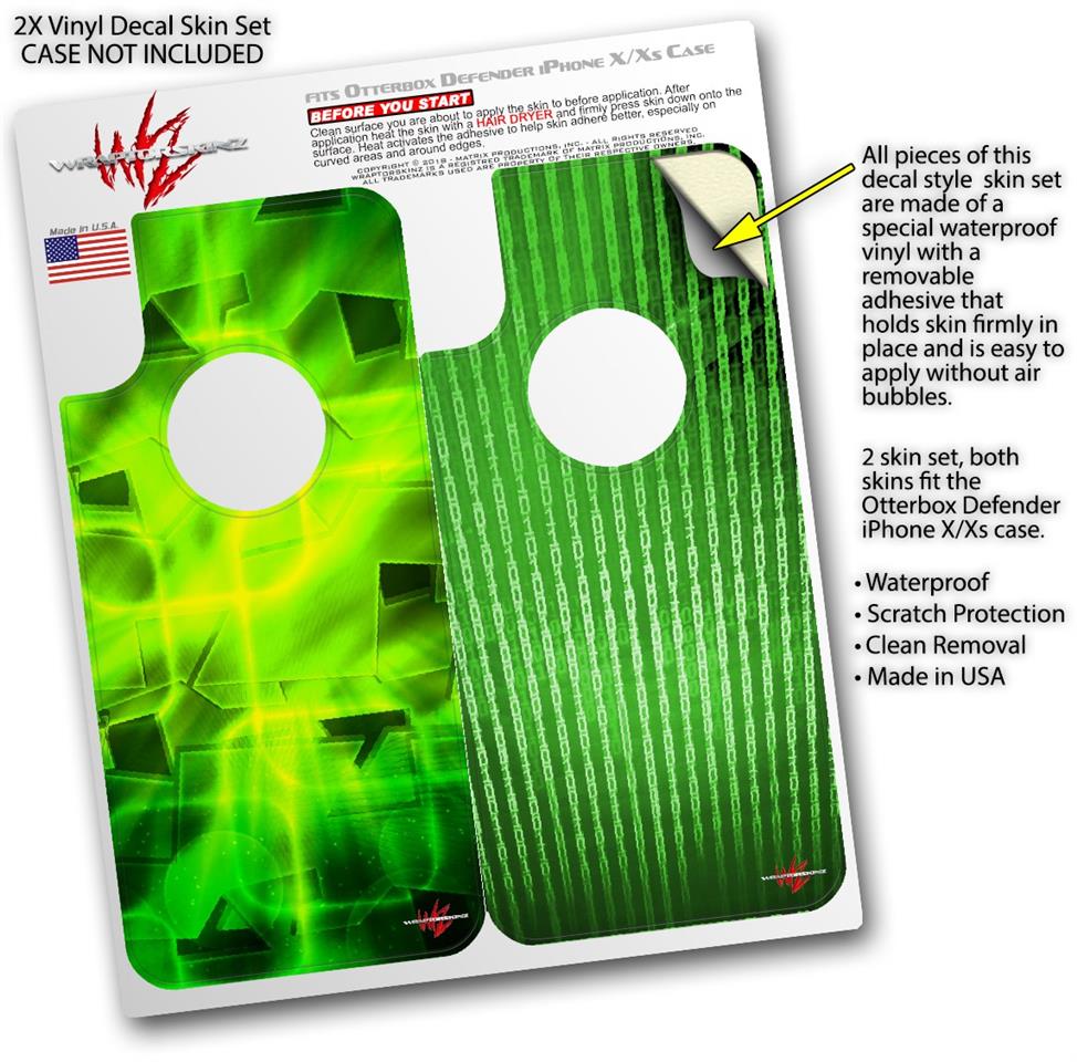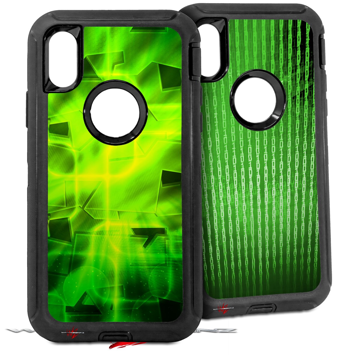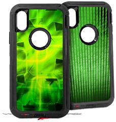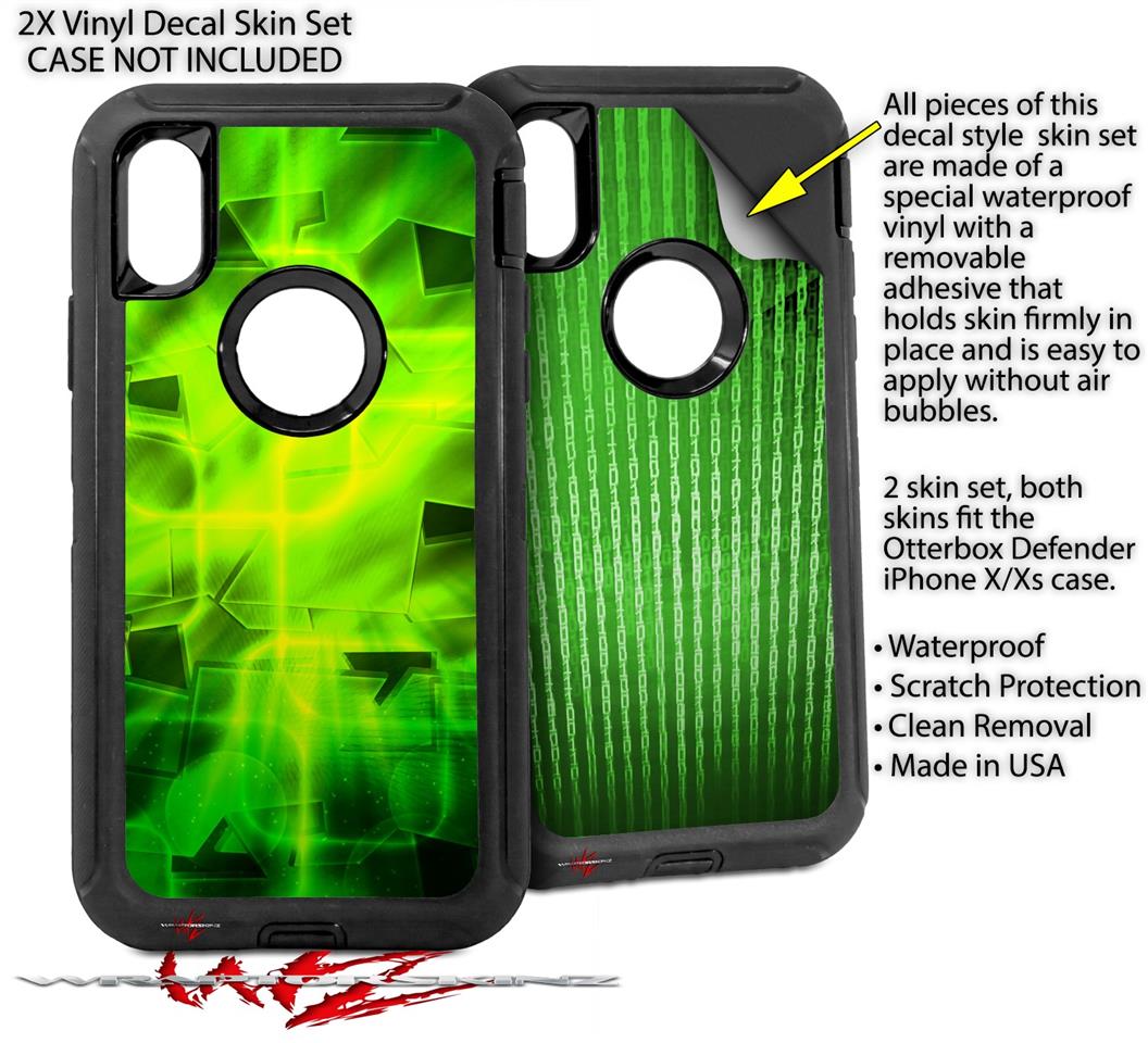 2x Decal style Skin Wrap Set compatible with Otterbox Defender iPhone X and Xs Case - Cubic Shards Green (CASE NOT INCLUDED)