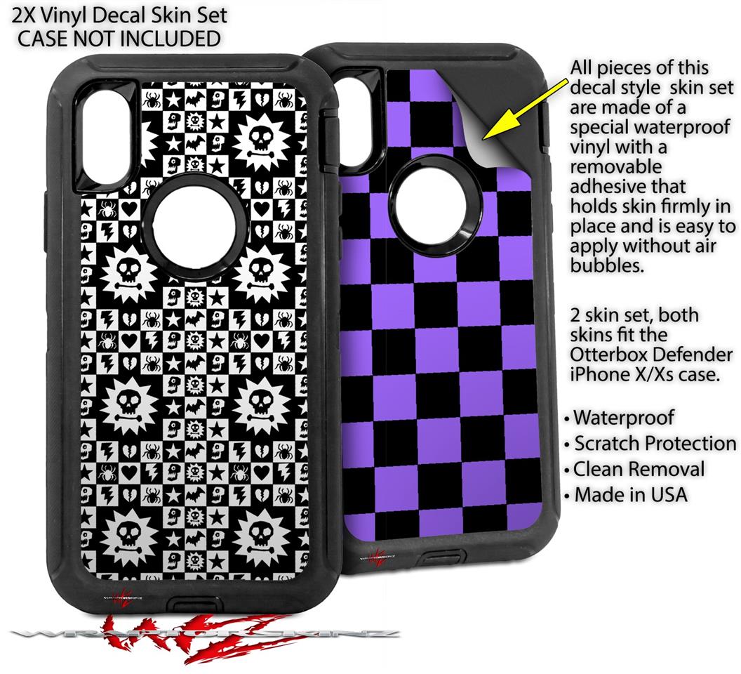 2x Decal style Skin Wrap Set compatible with Otterbox Defender iPhone X and Xs Case - Gothic Punk Pattern (CASE NOT INCLUDED)