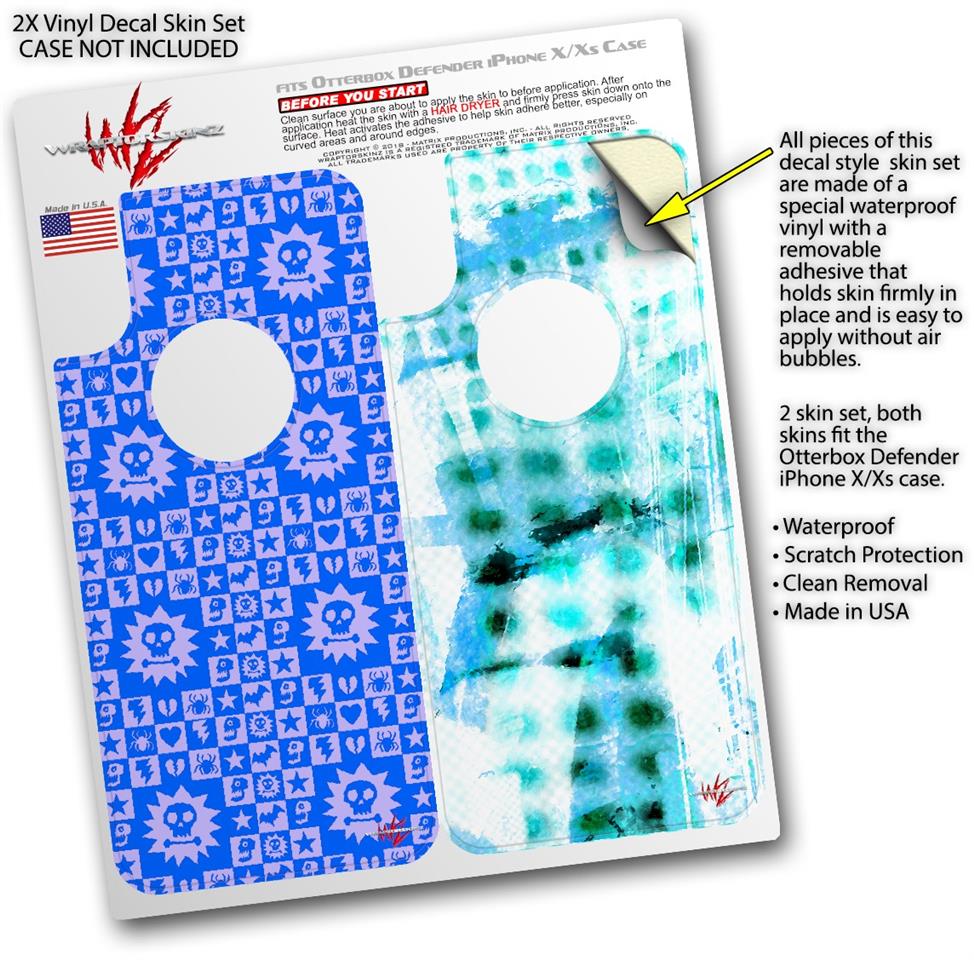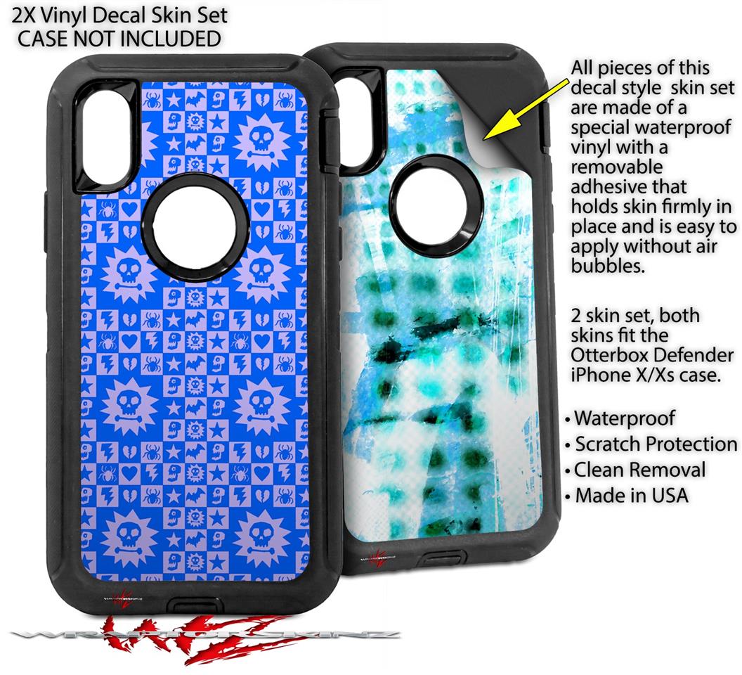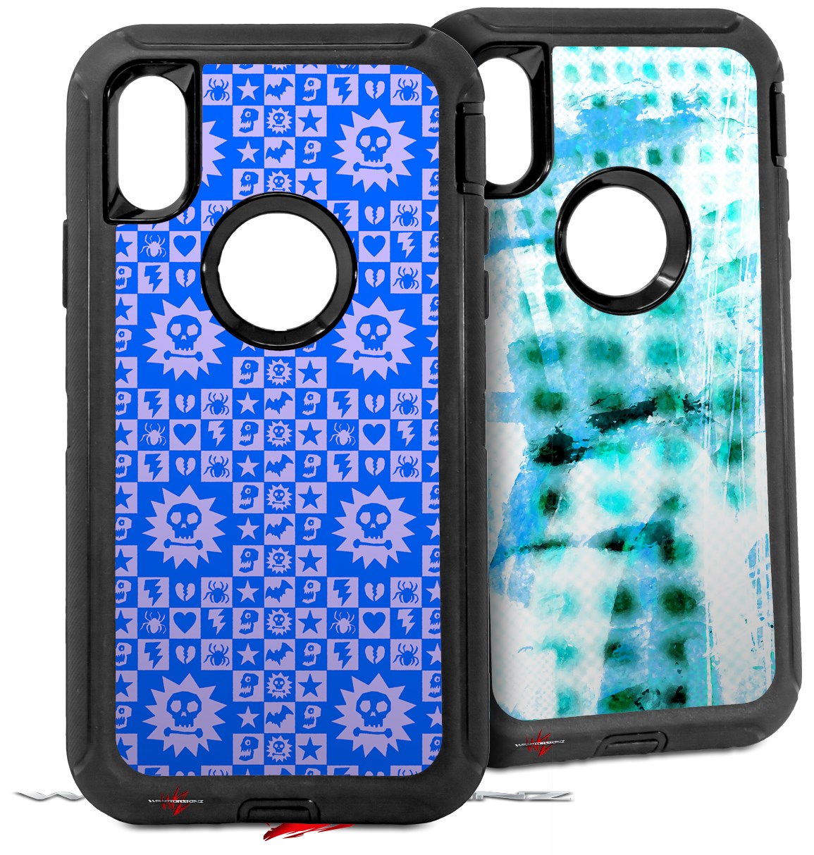 2x Decal style Skin Wrap Set compatible with Otterbox Defender iPhone X and Xs Case - Gothic Punk Pattern Blue (CASE NOT INCLUDED)