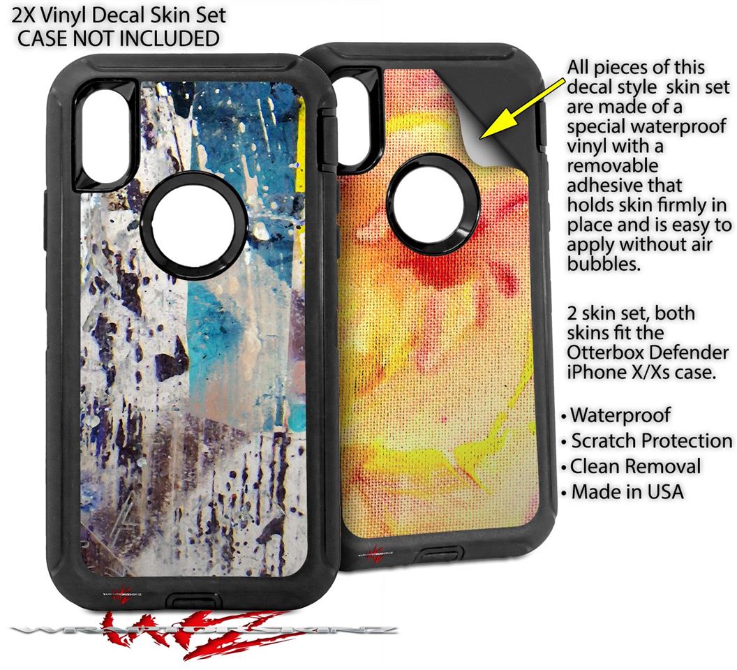 2x Decal style Skin Wrap Set compatible with Otterbox Defender iPhone X and Xs Case - Urban Graffiti (CASE NOT INCLUDED)