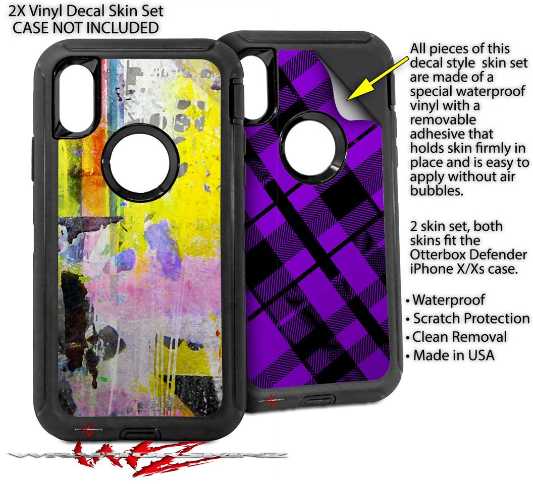 2x Decal style Skin Wrap Set compatible with Otterbox Defender iPhone X and Xs Case - Graffiti Pop (CASE NOT INCLUDED)