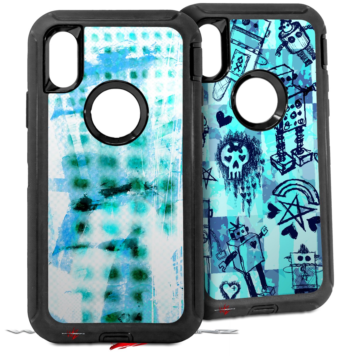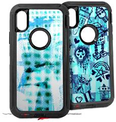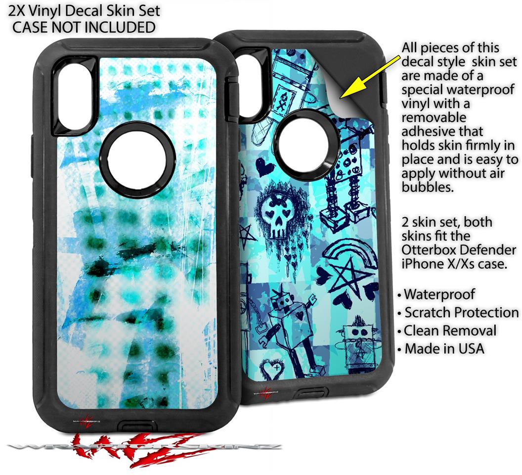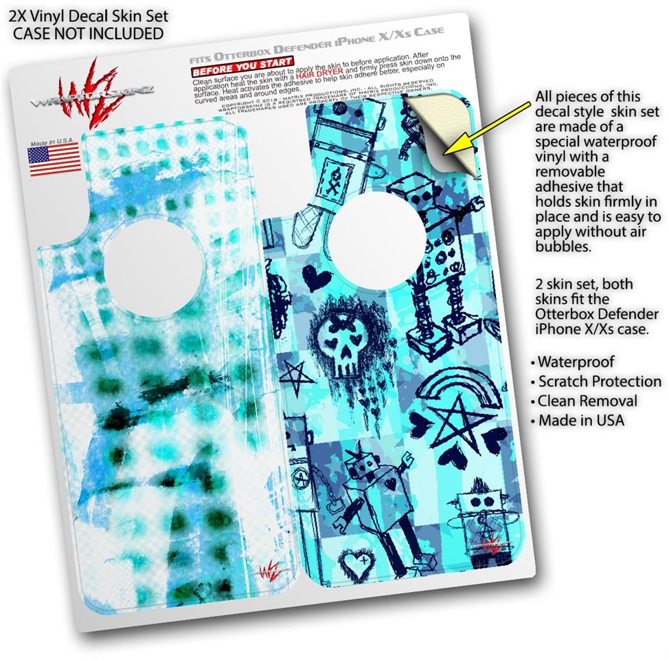2x Decal style Skin Wrap Set compatible with Otterbox Defender iPhone X and Xs Case - Electro Graffiti Blue (CASE NOT INCLUDED)