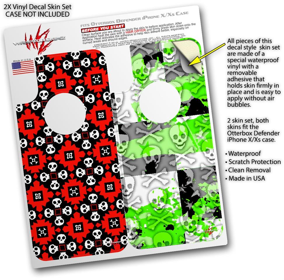 2x Decal style Skin Wrap Set compatible with Otterbox Defender iPhone X and Xs Case - Goth Punk Skulls (CASE NOT INCLUDED)
