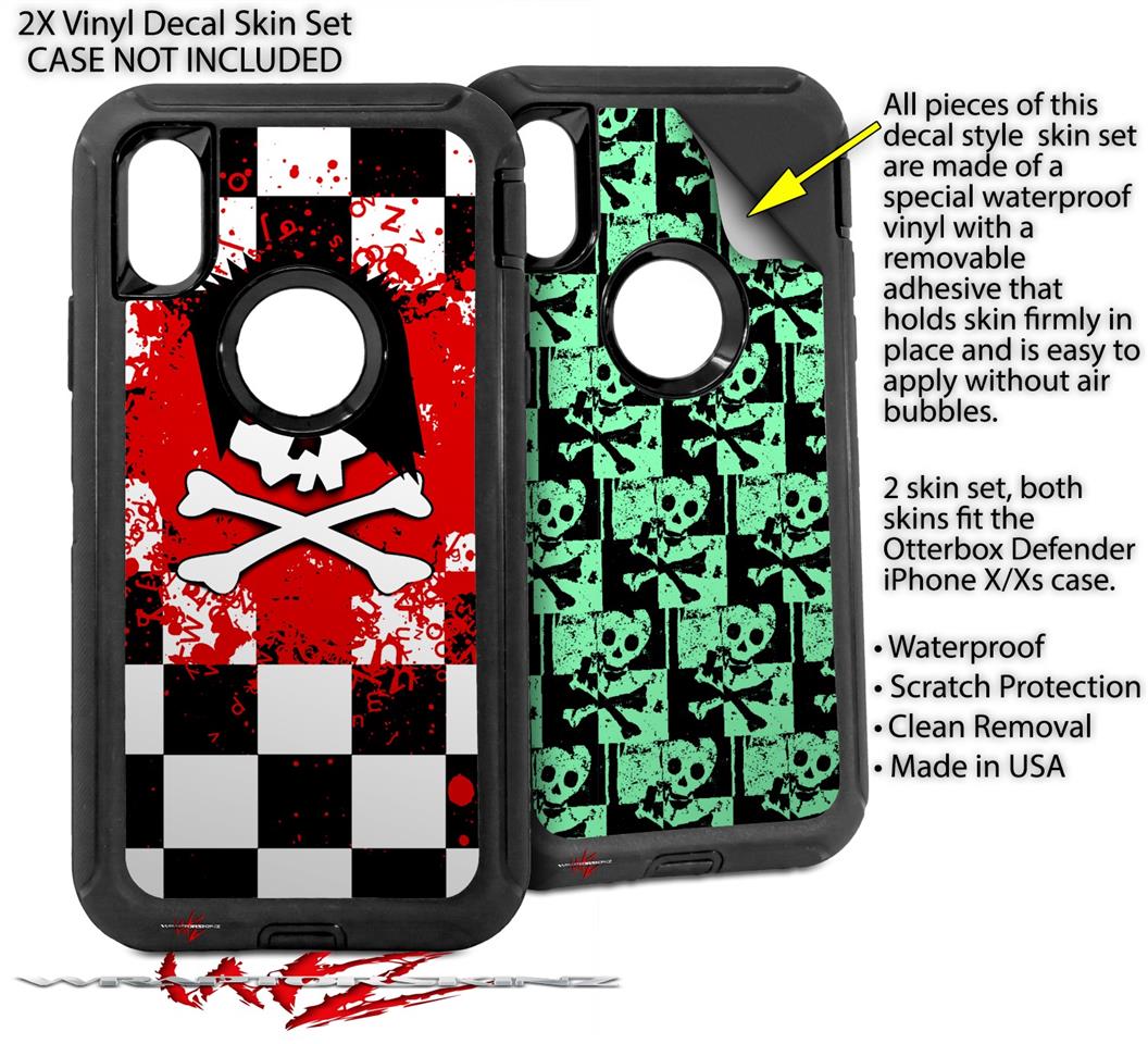 2x Decal style Skin Wrap Set compatible with Otterbox Defender iPhone X and Xs Case - Emo Skull 5 (CASE NOT INCLUDED)