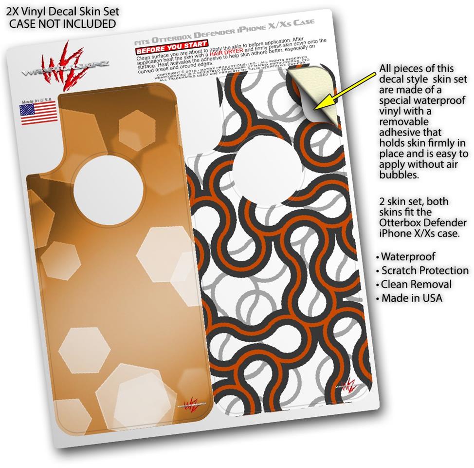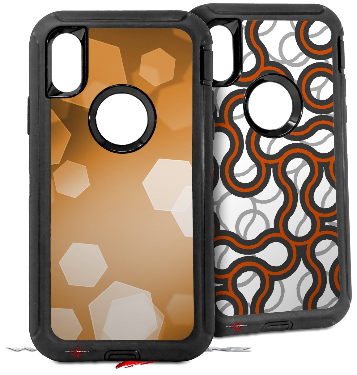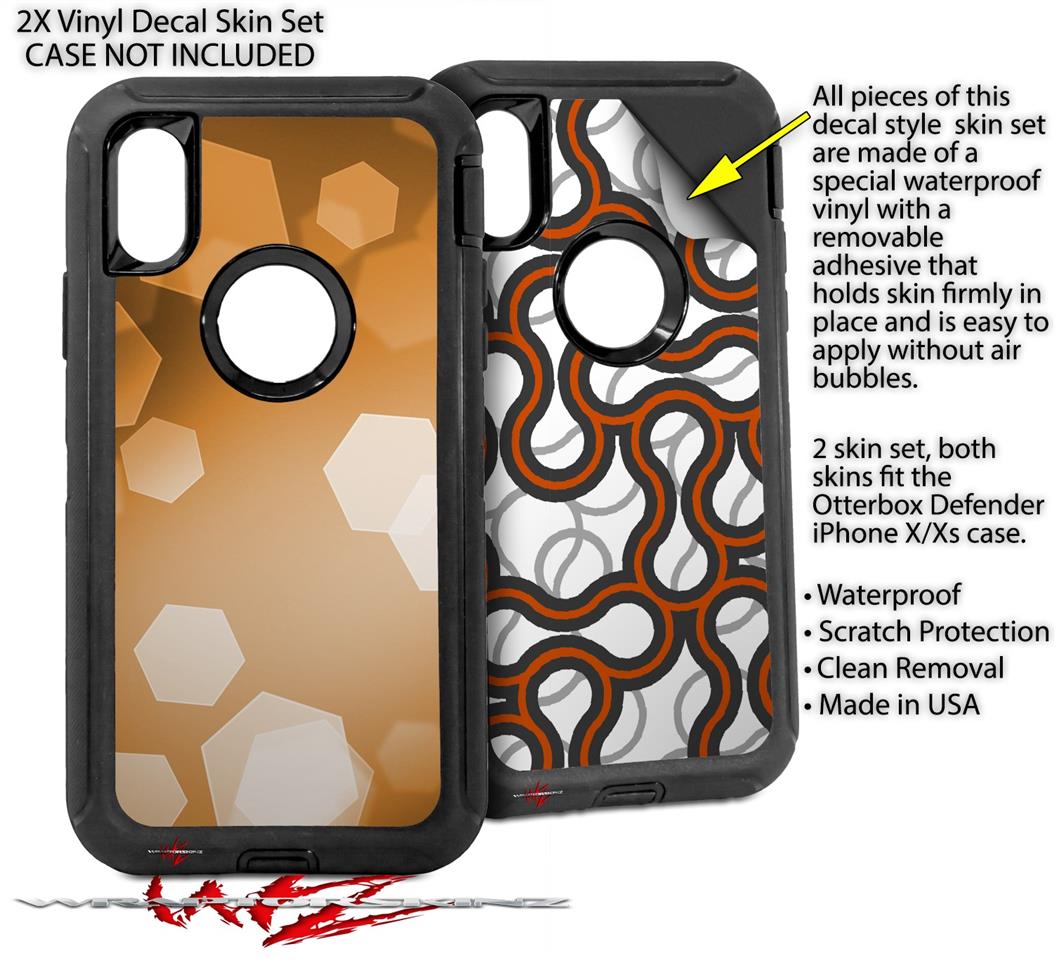 2x Decal style Skin Wrap Set compatible with Otterbox Defender iPhone X and Xs Case - Bokeh Hex Orange (CASE NOT INCLUDED)