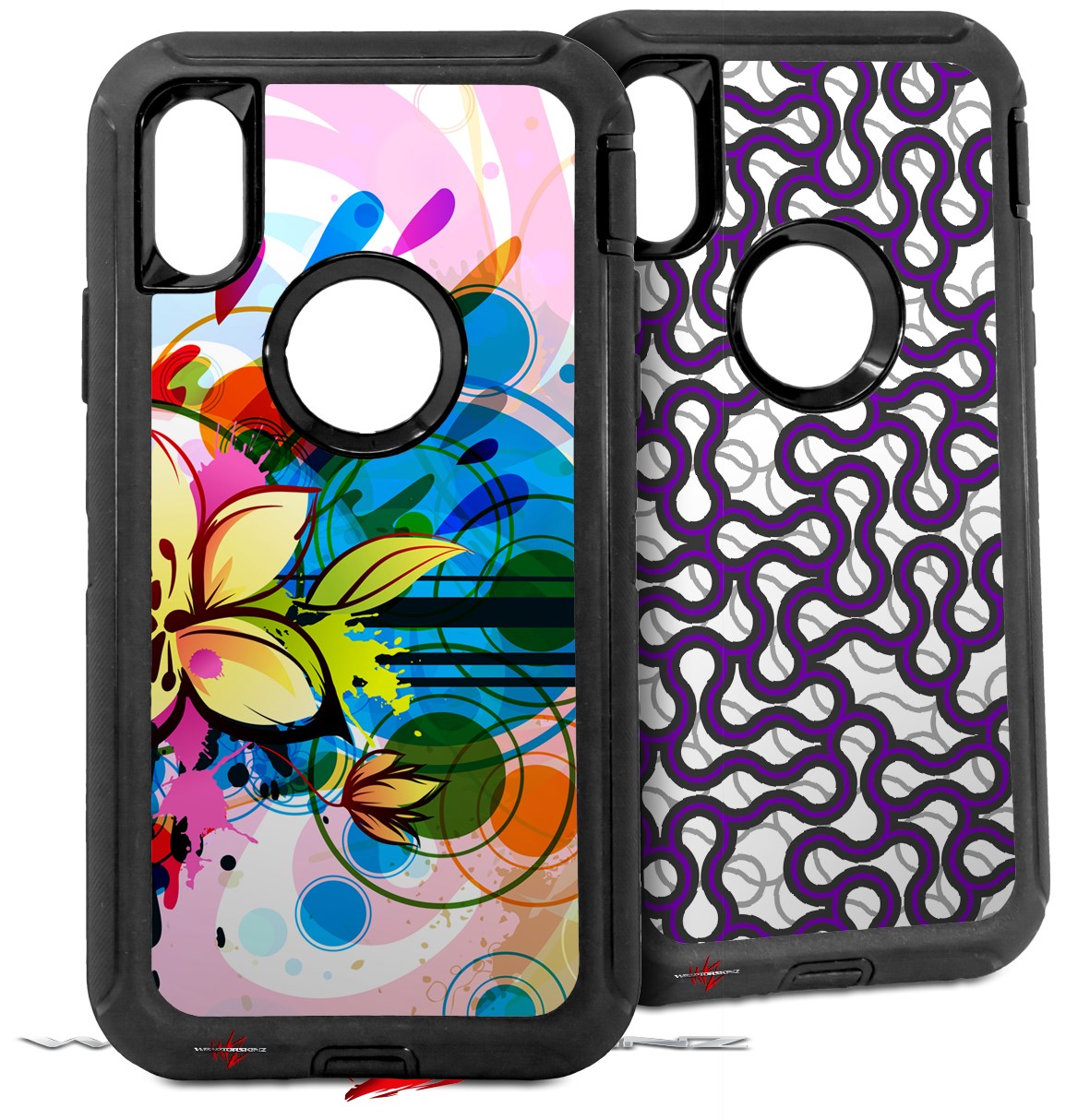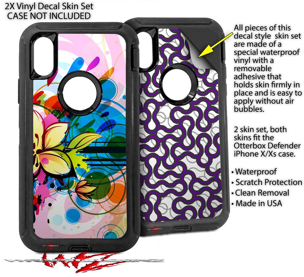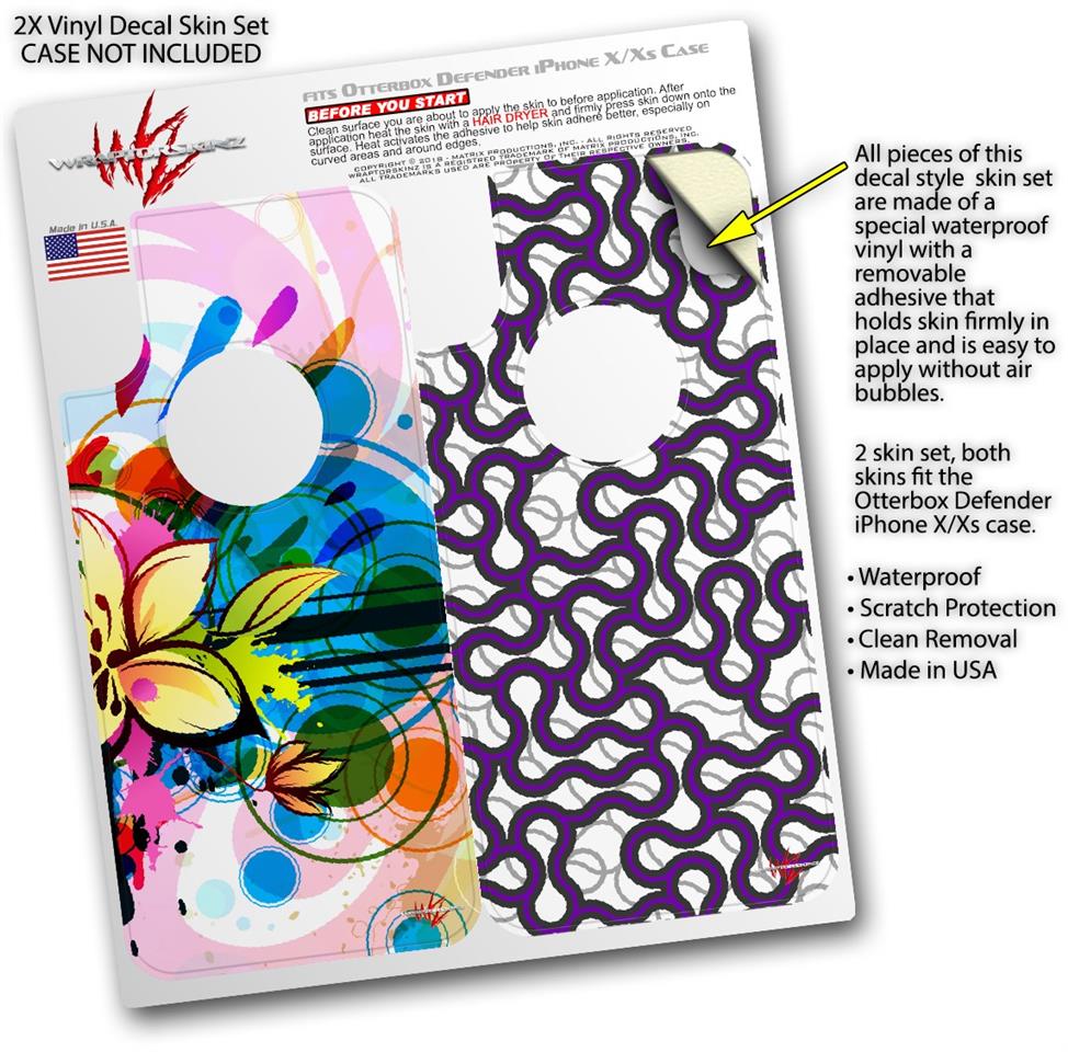2x Decal style Skin Wrap Set compatible with Otterbox Defender iPhone X and Xs Case - Floral Splash (CASE NOT INCLUDED)