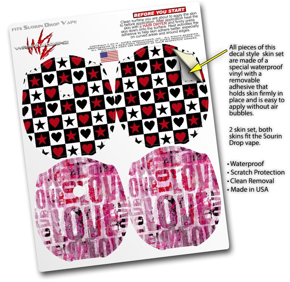 Skin Decal Wrap 2 Pack compatible with Suorin Drop Hearts and Stars Red VAPE NOT INCLUDED