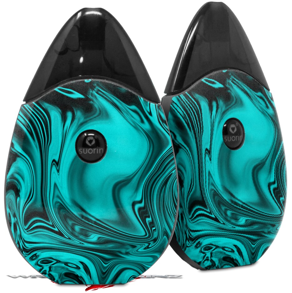 Skin Decal Wrap 2 Pack compatible with Suorin Drop Liquid Metal Chrome Neon Teal VAPE NOT INCLUDED
