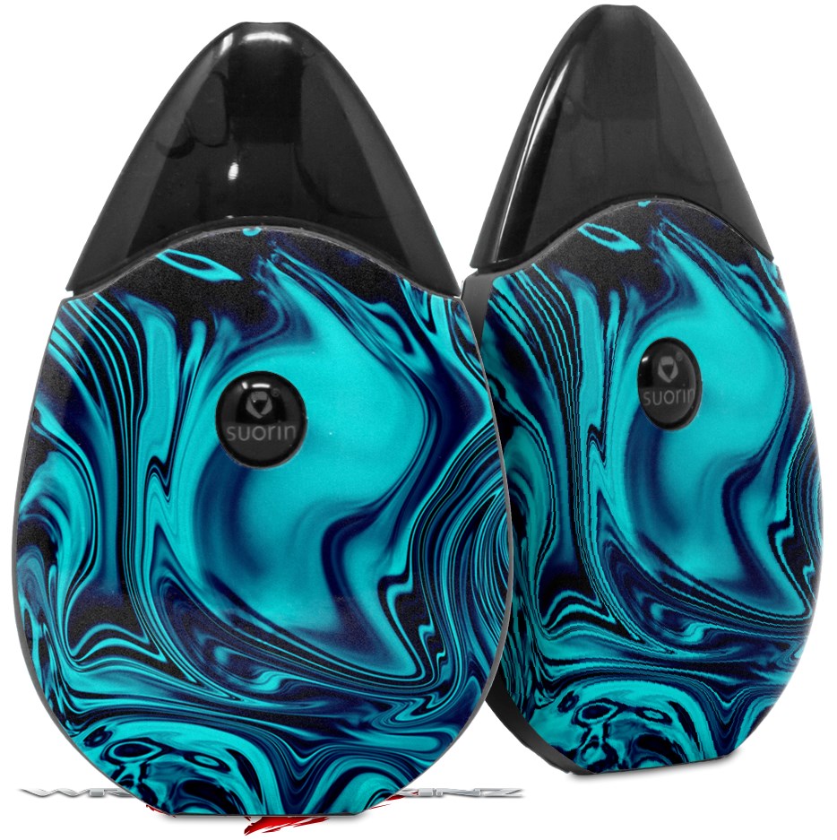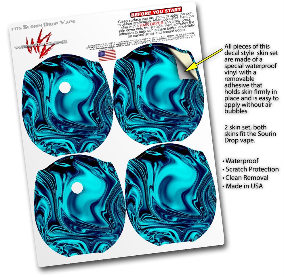 Skin Decal Wrap 2 Pack compatible with Suorin Drop Liquid Metal Chrome Neon Blue VAPE NOT INCLUDED