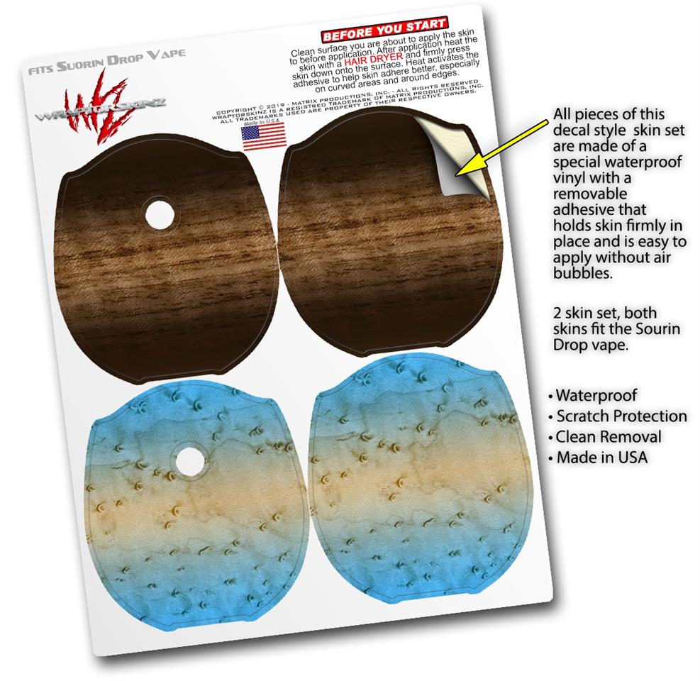 Skin Decal Wrap 2 Pack compatible with Suorin Drop Exotic Wood Pommele Sapele Burst Dark Mocha VAPE NOT INCLUDED