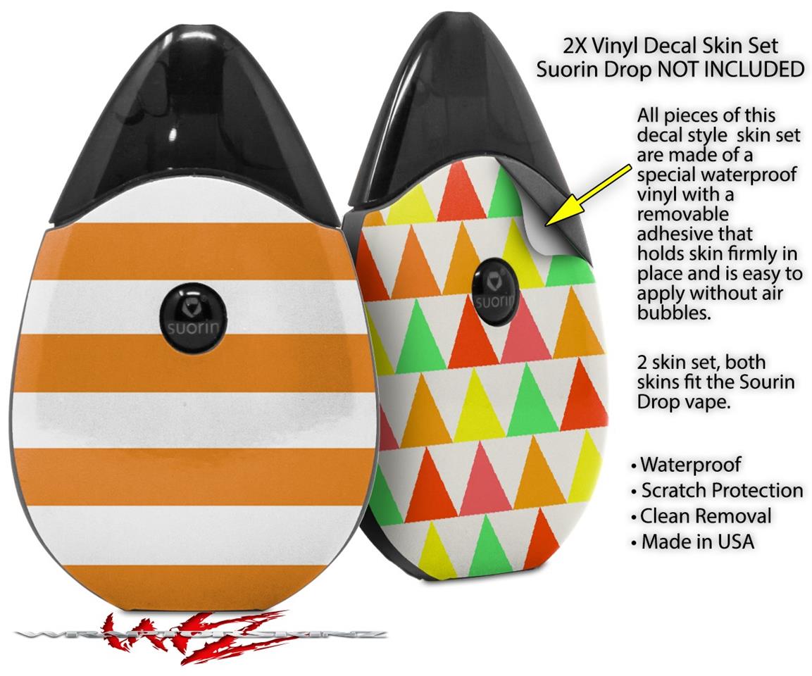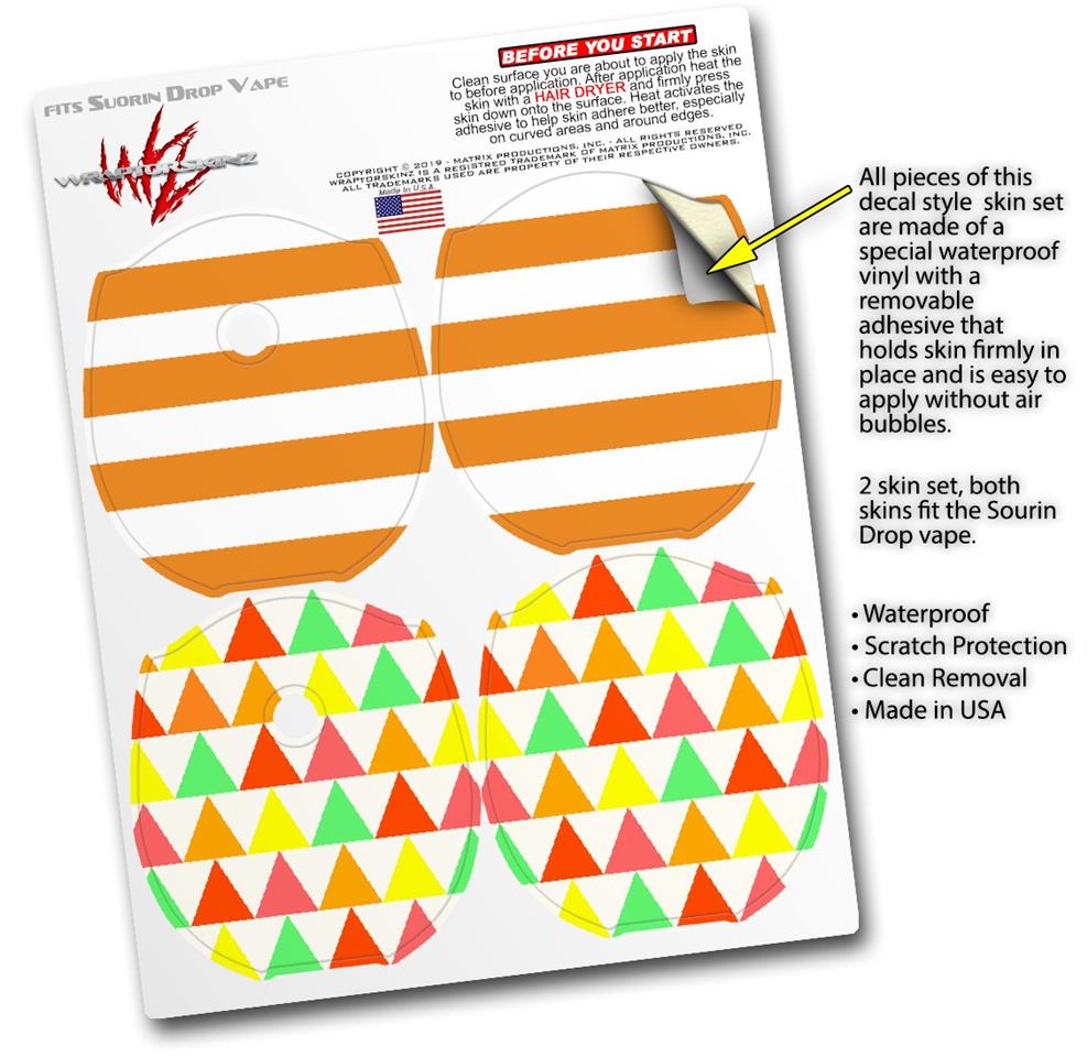 Skin Decal Wrap 2 Pack compatible with Suorin Drop Psycho Stripes Orange and White VAPE NOT INCLUDED