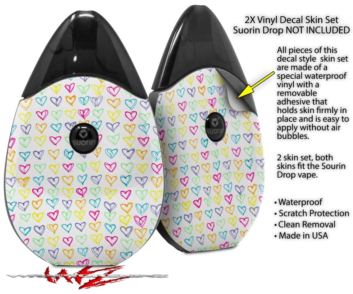 Skin Decal Wrap 2 Pack compatible with Suorin Drop Kearas Hearts White VAPE NOT INCLUDED