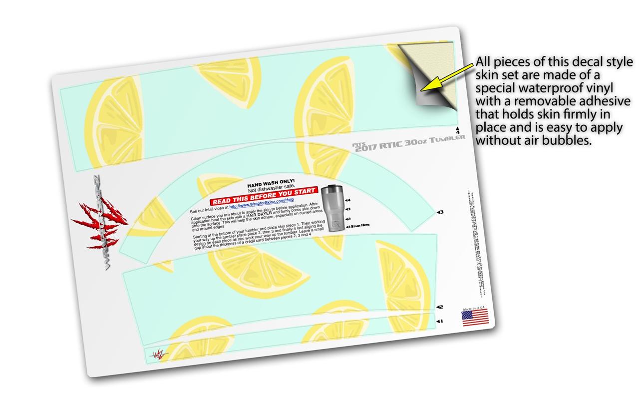 WraptorSkinz Skin Wrap compatible with 2017 and newer RTIC Tumblers 30oz Lemons Blue (TUMBLER NOT INCLUDED)