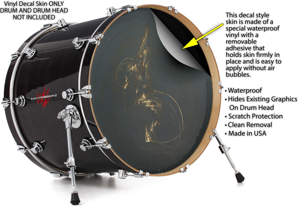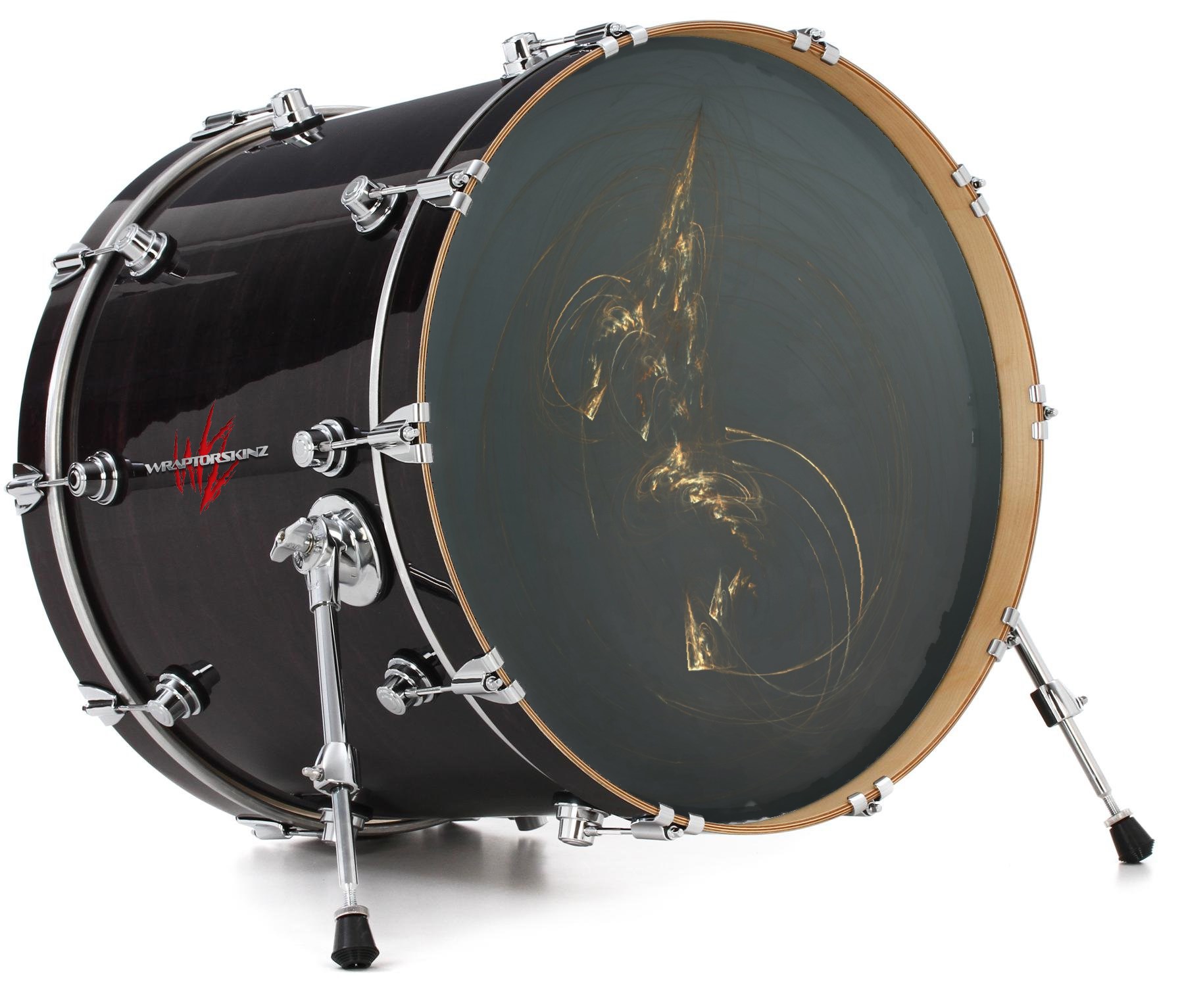 This design also available in other sizes. WraptorSkinz® skin wraps compatible with most kick drum heads. Printed using superb photo quality designs and vibrant colors printed with special fade resistant inks that last even in direct sun for years. WraptorSkinz are a composite three layer commercial grade materials vinyl. The bottom layer is a air release, grey block out removable adhesive that hides existing graphics on the drum head and is easily applied without air bubbles. The middle layer is a flexible vinyl printed with UV protected, fade resistant inks that deliver superb photo quality designs in vibrant colors. Finally, we bond a professional grade laminate over the entire skin adding a glossy protective finish.