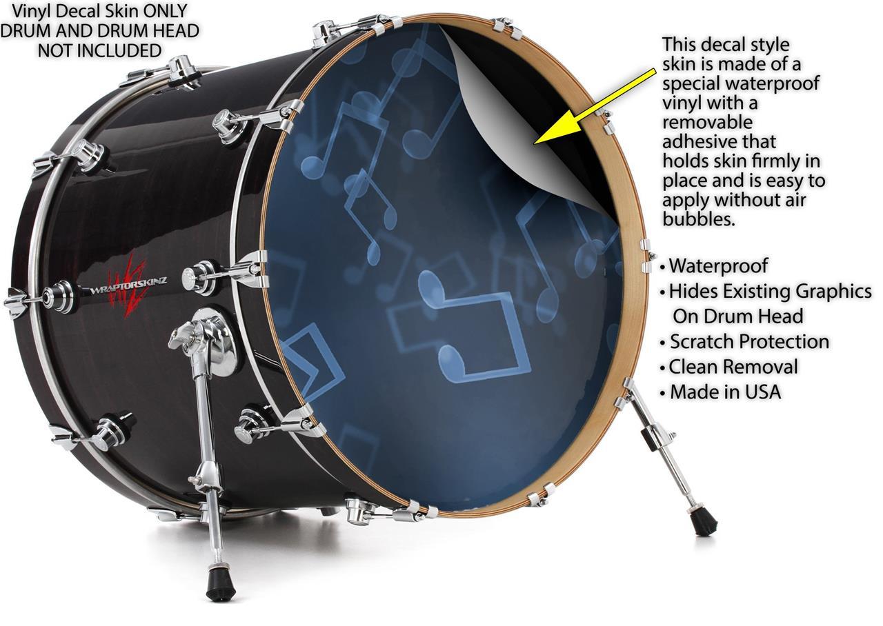 This design also available in other sizes. WraptorSkinz® skin wraps compatible with most kick drum heads. Printed using superb photo quality designs and vibrant colors printed with special fade resistant inks that last even in direct sun for years. WraptorSkinz are a composite three layer commercial grade materials vinyl. The bottom layer is a air release, grey block out removable adhesive that hides existing graphics on the drum head and is easily applied without air bubbles. The middle layer is a flexible vinyl printed with UV protected, fade resistant inks that deliver superb photo quality designs in vibrant colors. Finally, we bond a professional grade laminate over the entire skin adding a glossy protective finish.