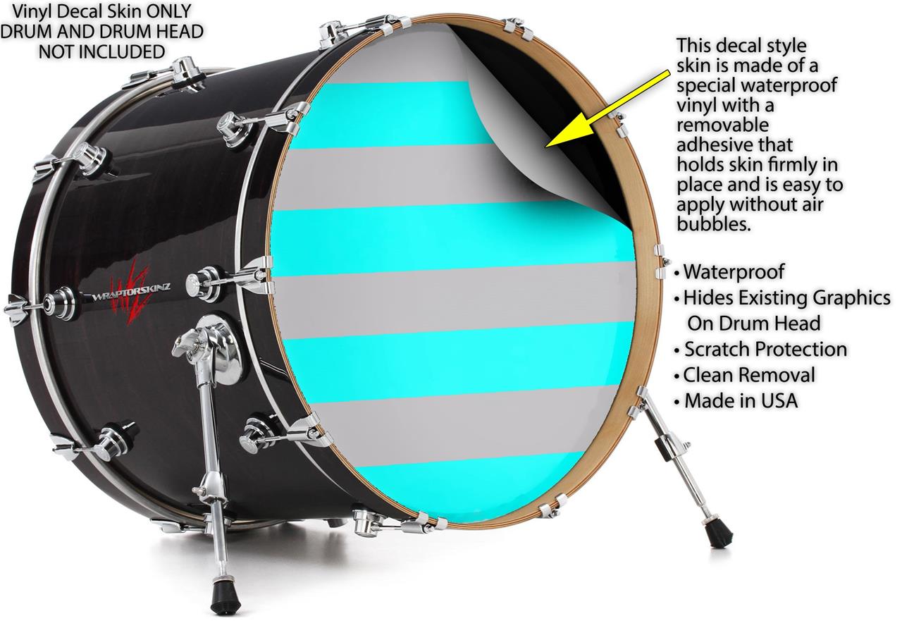 Vinyl Decal Skin Wrap for 22" Bass Kick Drum Head Psycho Stripes Neon Teal and Gray - DRUM HEAD NOT INCLUDED