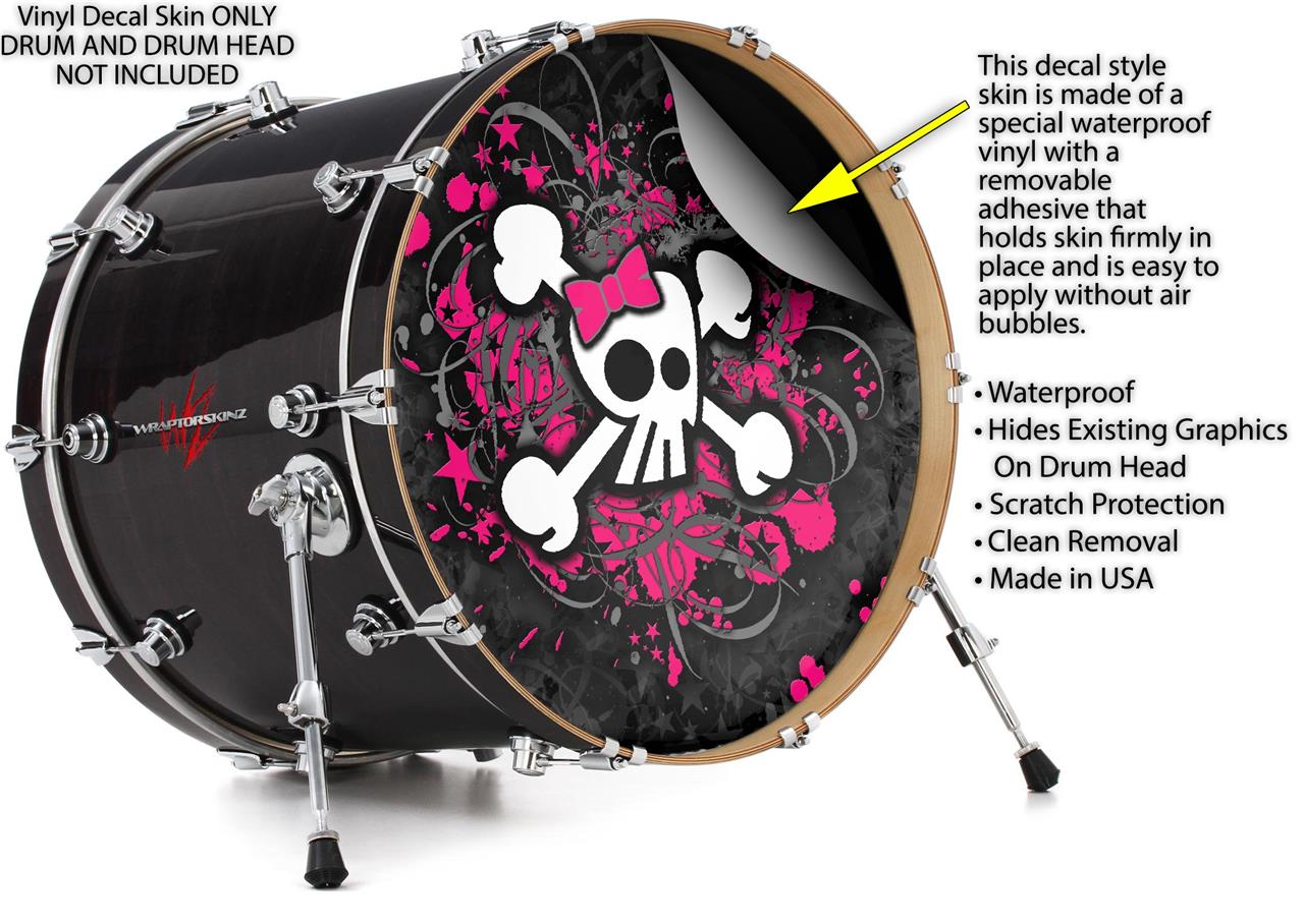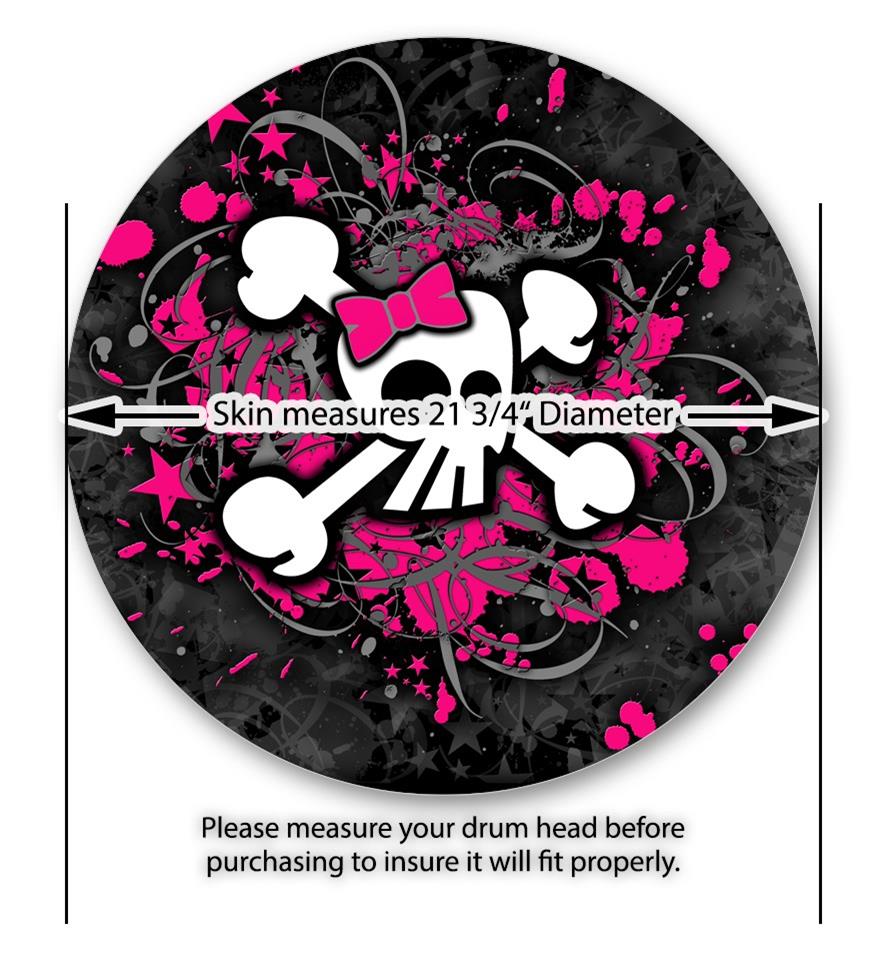 Vinyl Decal Skin Wrap for 22" Bass Kick Drum Head Girly Skull Bones - DRUM HEAD NOT INCLUDED