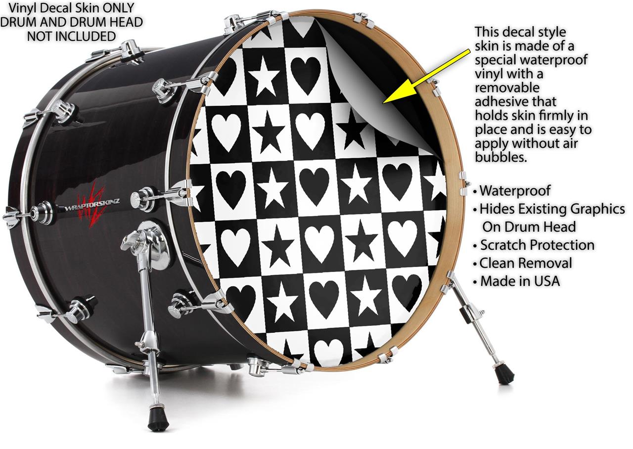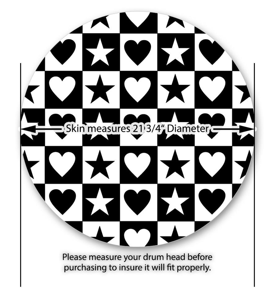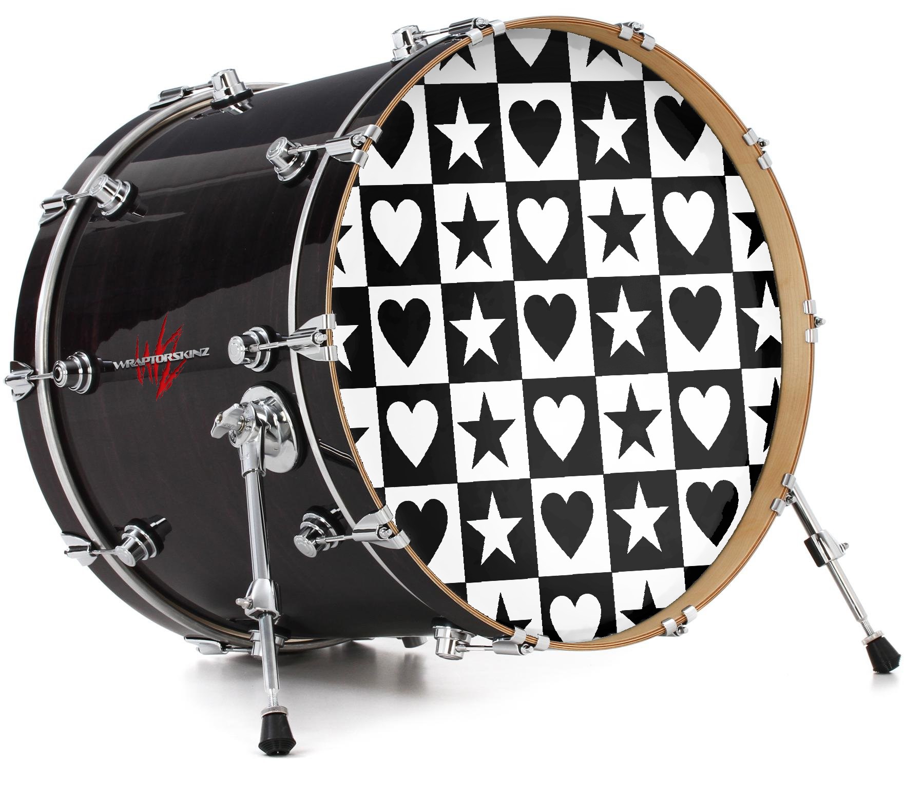 Vinyl Decal Skin Wrap for 22" Bass Kick Drum Head Hearts And Stars Black and White - DRUM HEAD NOT INCLUDED