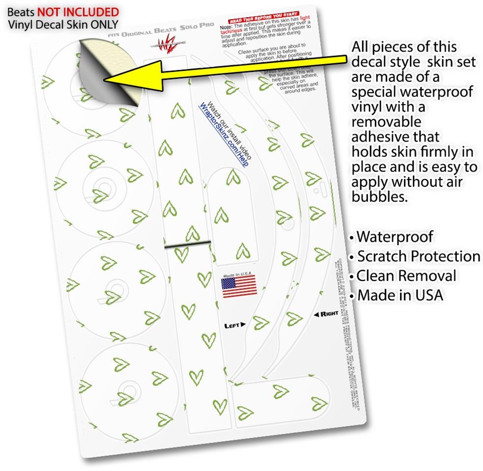 WraptorSkinz Skin Skin Decal Wrap works with Beats Solo Pro (Original) Headphones Hearts Green Skin Only BEATS NOT INCLUDED