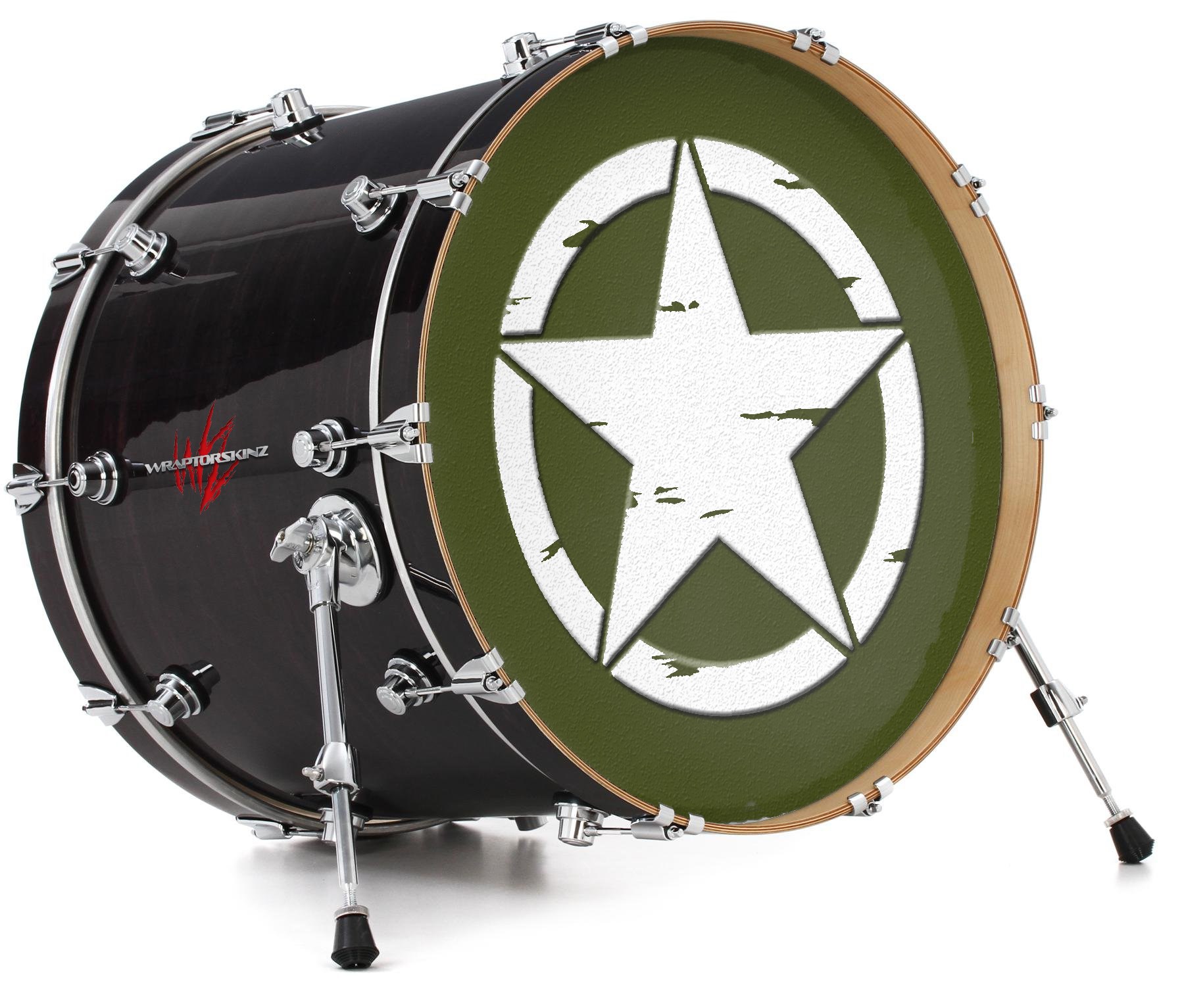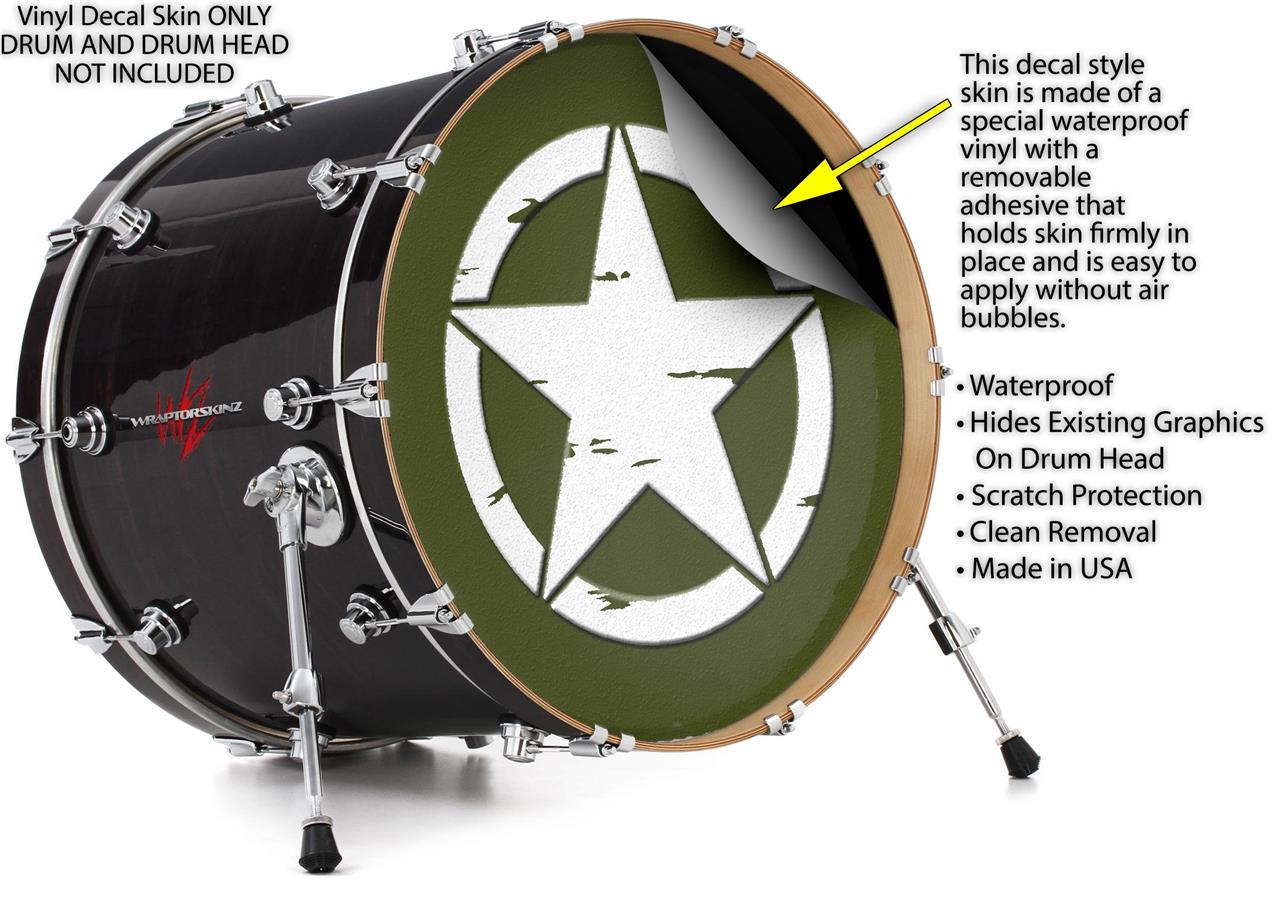 Vinyl Decal Skin Wrap for 20" Bass Kick Drum Head Distressed Army Star - DRUM HEAD NOT INCLUDED