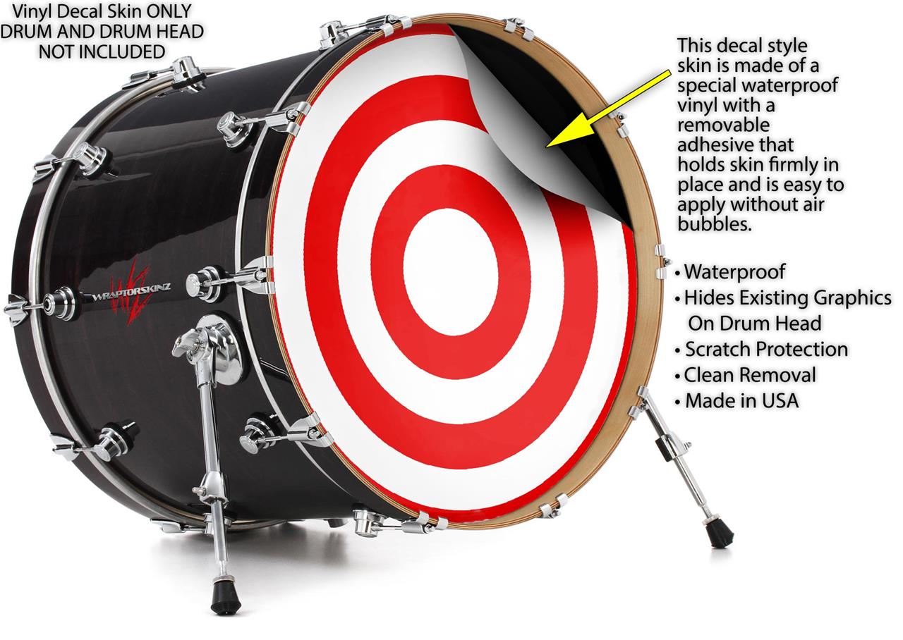 Vinyl Decal Skin Wrap for 20" Bass Kick Drum Head Bullseye Red and White - DRUM HEAD NOT INCLUDED