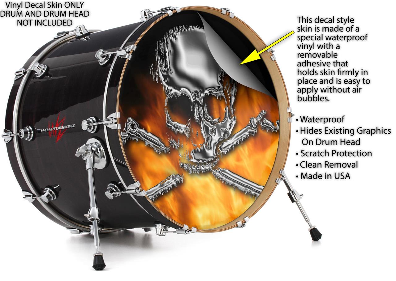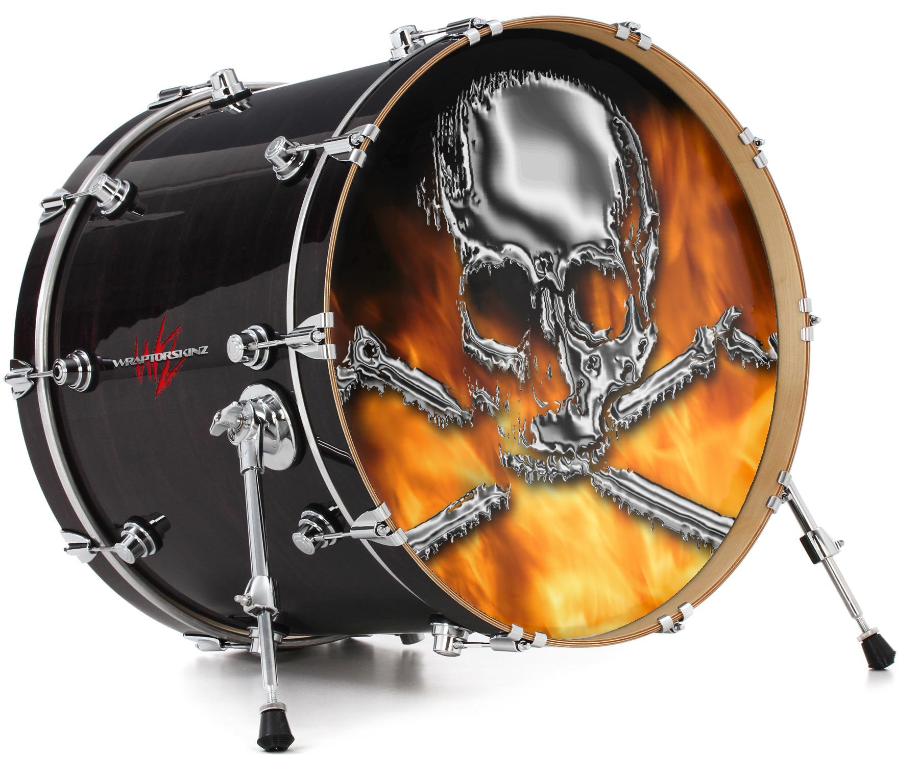 Vinyl Decal Skin Wrap for 20" Bass Kick Drum Head Chrome Skull on Fire - DRUM HEAD NOT INCLUDED