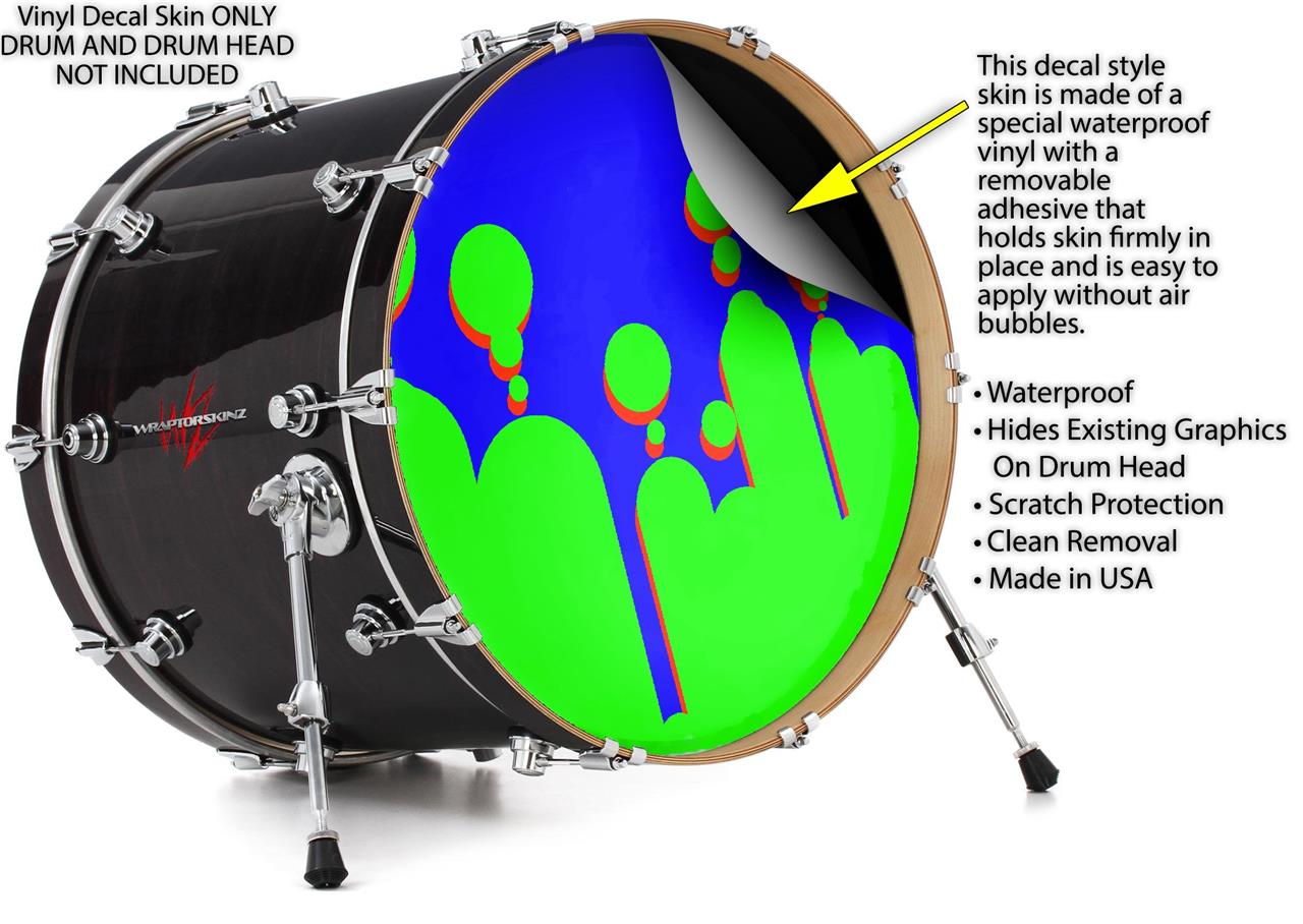 Vinyl Decal Skin Wrap for 20" Bass Kick Drum Head Drip Blue Green Red - DRUM HEAD NOT INCLUDED