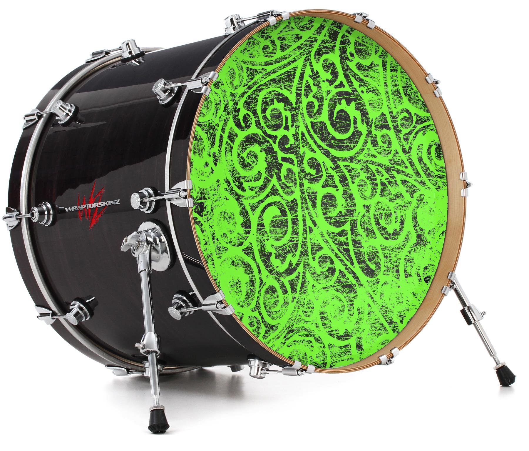Vinyl Decal Skin Wrap for 20" Bass Kick Drum Head Folder Doodles Neon Green - DRUM HEAD NOT INCLUDED