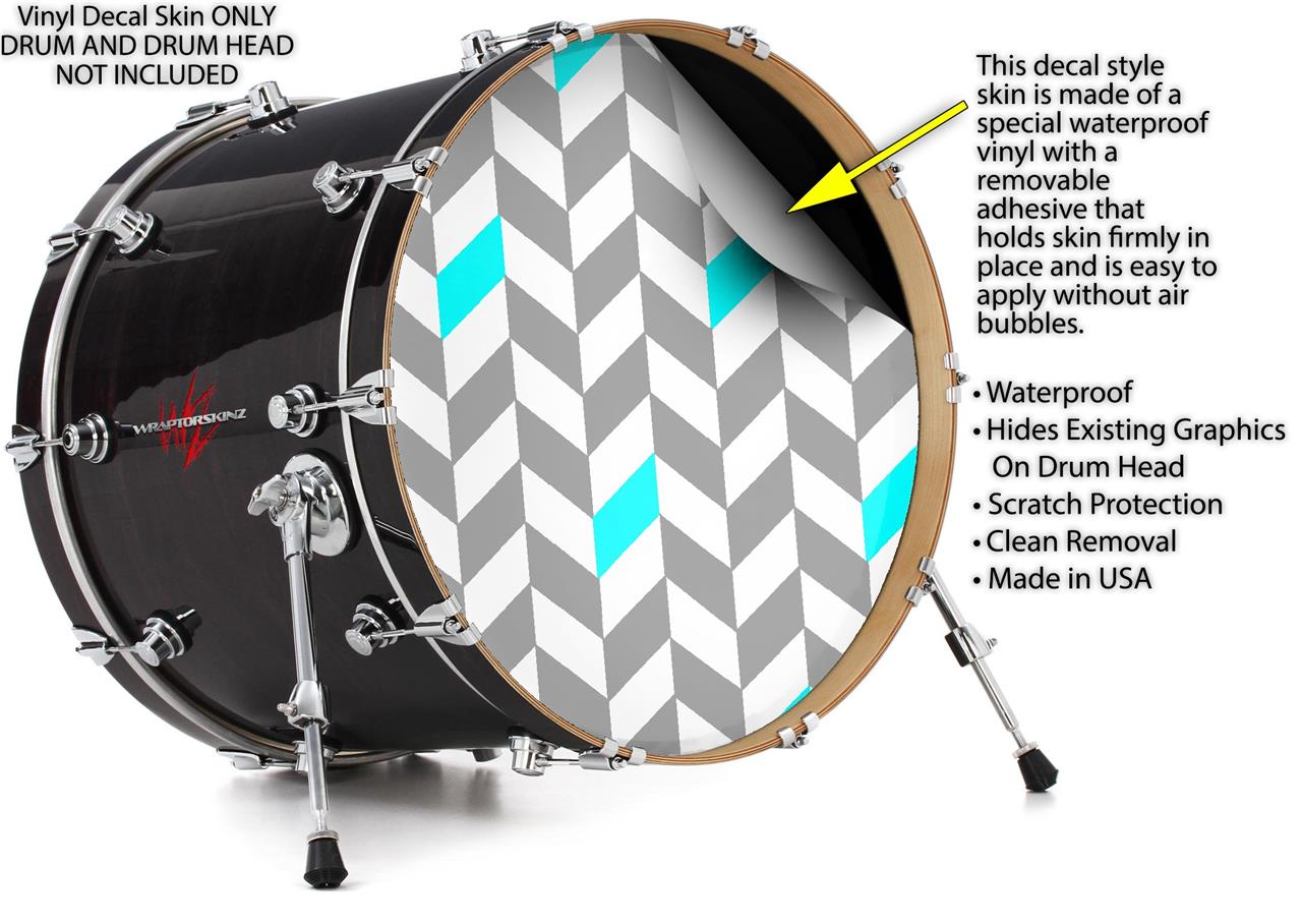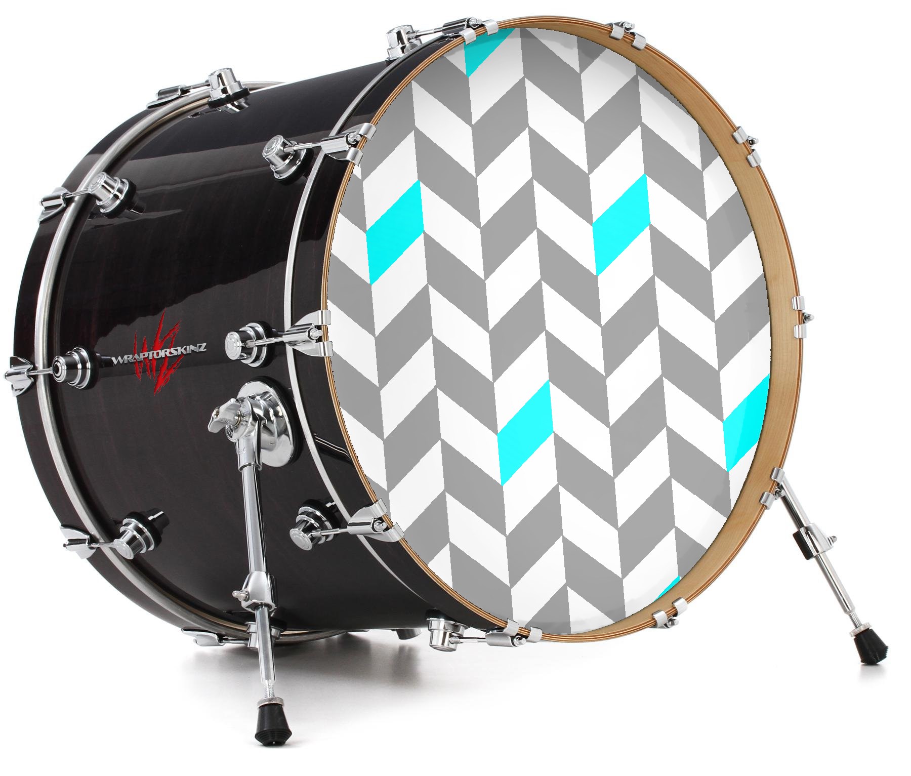 Vinyl Decal Skin Wrap for 20" Bass Kick Drum Head Chevrons Gray And Aqua - DRUM HEAD NOT INCLUDED
