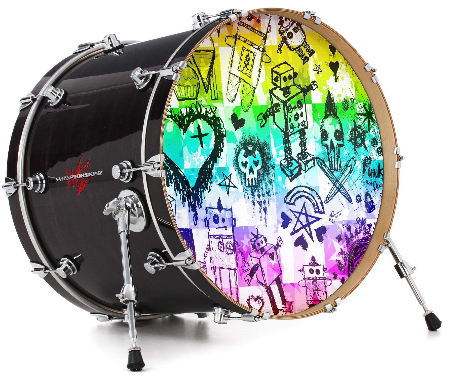 Vinyl Decal Skin Wrap for 20" Bass Kick Drum Head Scene Kid Sketches Rainbow - DRUM HEAD NOT INCLUDED