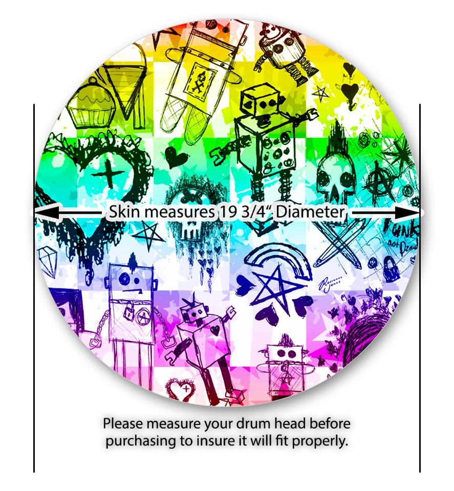 This design also available in other sizes. WraptorSkinz® skin wraps compatible with most kick drum heads. Printed using superb photo quality designs and vibrant colors printed with special fade resistant inks that last even in direct sun for years. WraptorSkinz are a composite three layer commercial grade materials vinyl. The bottom layer is a air release, grey block out removable adhesive that hides existing graphics on the drum head and is easily applied without air bubbles. The middle layer is a flexible vinyl printed with UV protected, fade resistant inks that deliver superb photo quality designs in vibrant colors. Finally, we bond a professional grade laminate over the entire skin adding a glossy protective finish.