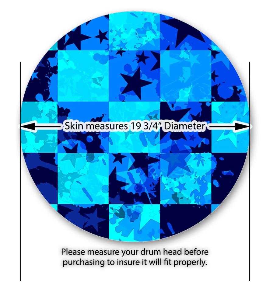 Vinyl Decal Skin Wrap for 20" Bass Kick Drum Head Blue Star Checkers - DRUM HEAD NOT INCLUDED