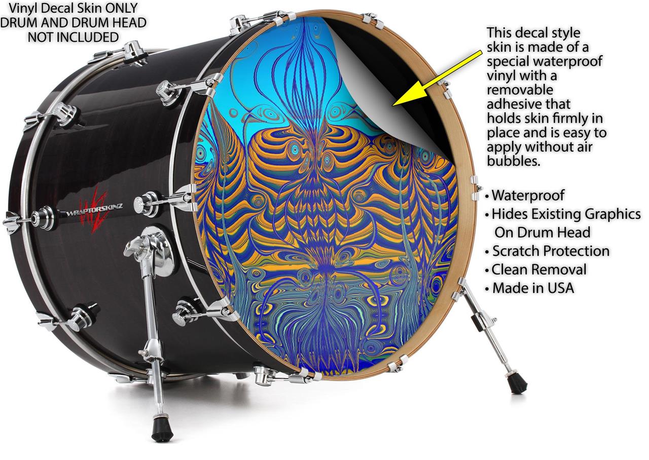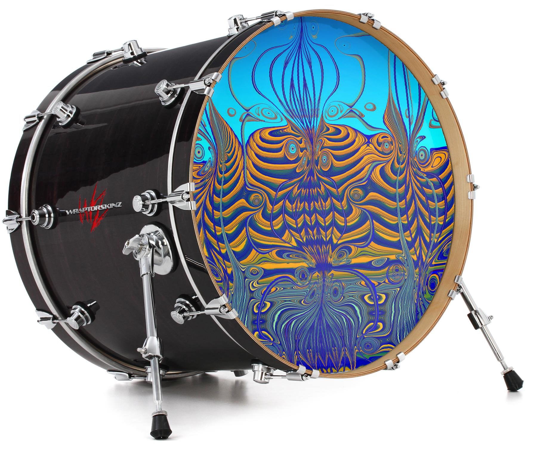 This design also available in other sizes. WraptorSkinz® skin wraps compatible with most kick drum heads. Printed using superb photo quality designs and vibrant colors printed with special fade resistant inks that last even in direct sun for years. WraptorSkinz are a composite three layer commercial grade materials vinyl. The bottom layer is a air release, grey block out removable adhesive that hides existing graphics on the drum head and is easily applied without air bubbles. The middle layer is a flexible vinyl printed with UV protected, fade resistant inks that deliver superb photo quality designs in vibrant colors. Finally, we bond a professional grade laminate over the entire skin adding a glossy protective finish.
