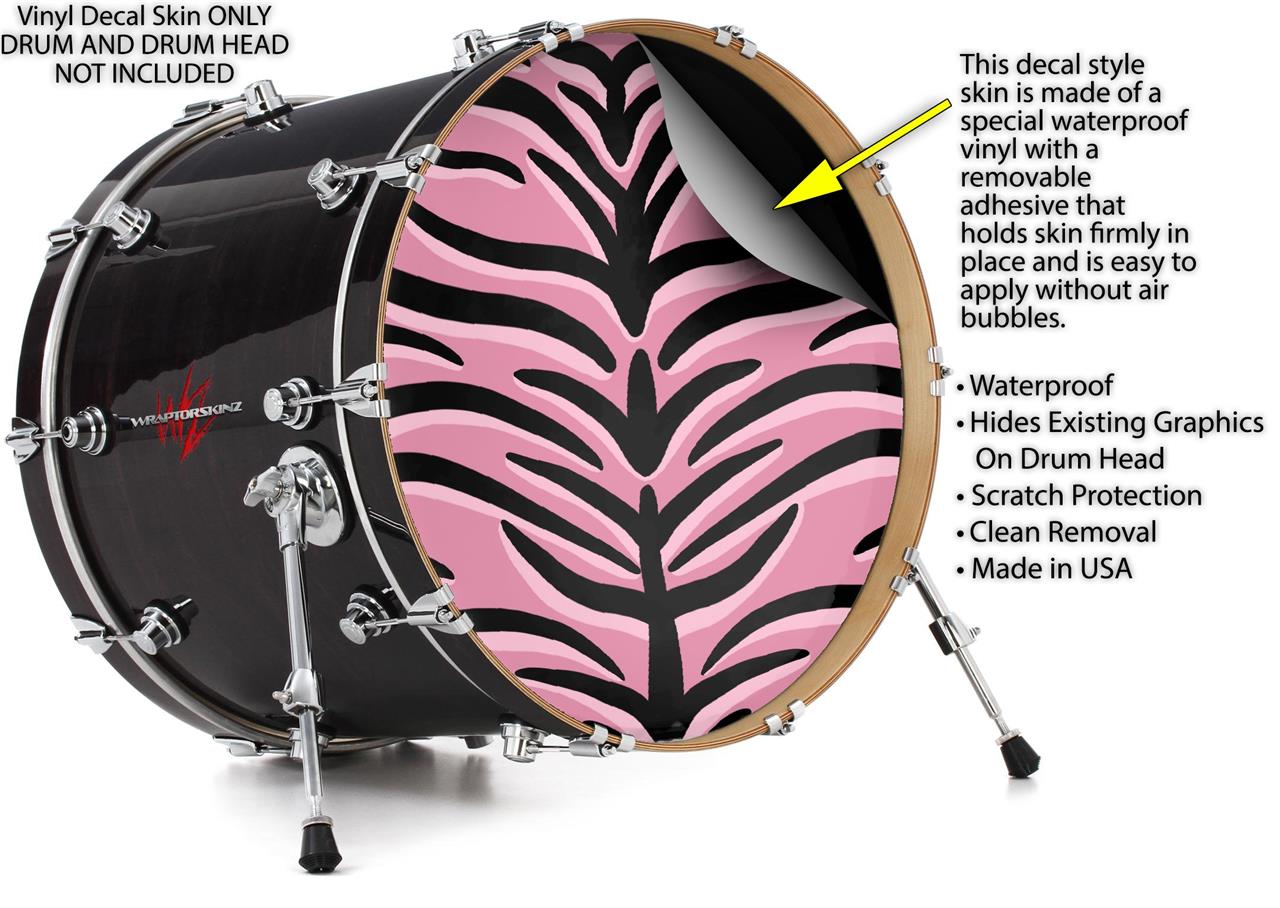 Decal Skin works with most 24" Bass Kick Drum Heads Pink Tiger - DRUM HEAD NOT INCLUDED