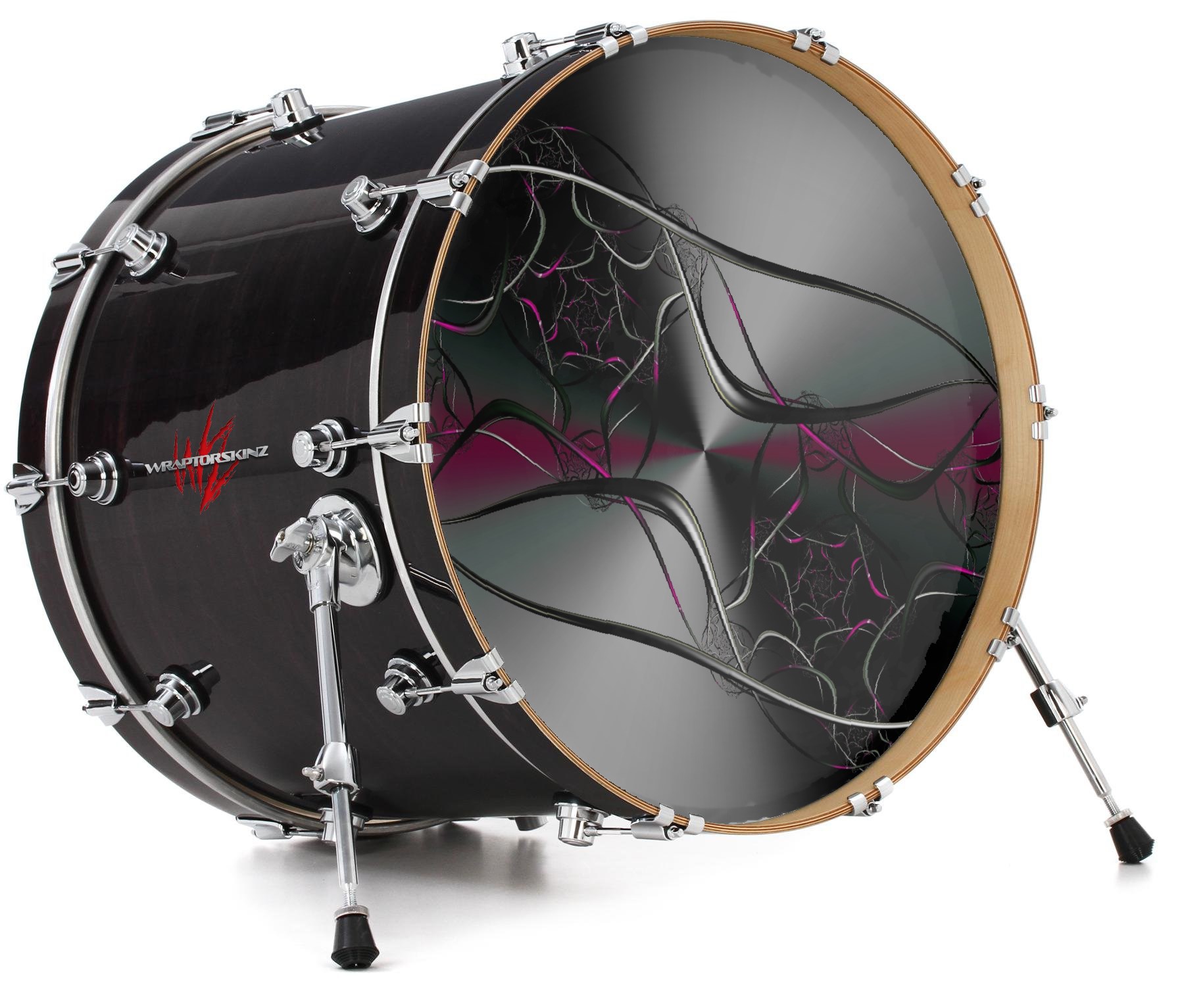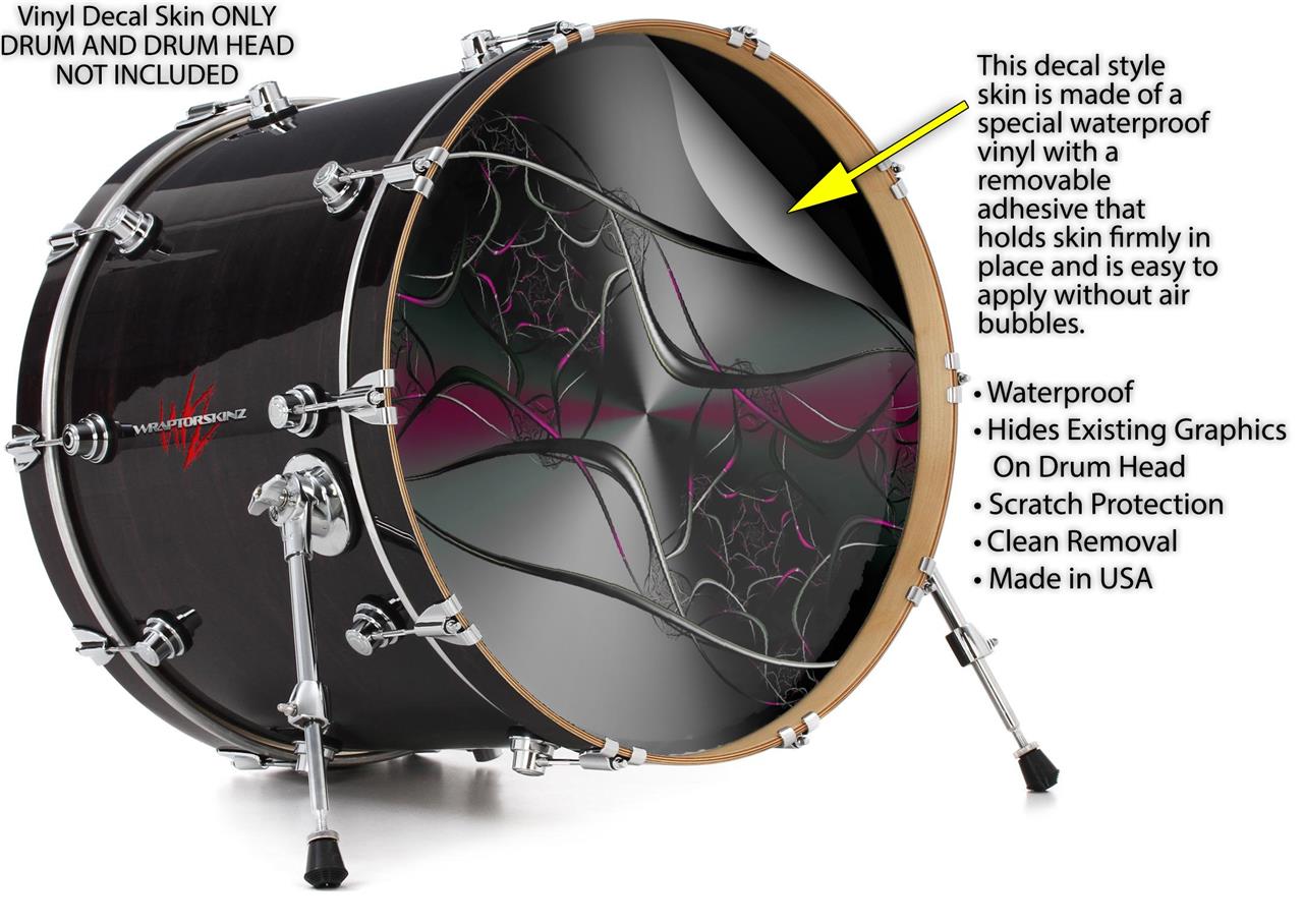 This design also available in other sizes. WraptorSkinz® skin wraps compatible with most kick drum heads. Printed using superb photo quality designs and vibrant colors printed with special fade resistant inks that last even in direct sun for years. WraptorSkinz are a composite three layer commercial grade materials vinyl. The bottom layer is a air release, grey block out removable adhesive that hides existing graphics on the drum head and is easily applied without air bubbles. The middle layer is a flexible vinyl printed with UV protected, fade resistant inks that deliver superb photo quality designs in vibrant colors. Finally, we bond a professional grade laminate over the entire skin adding a glossy protective finish.