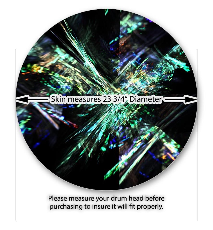This design also available in other sizes. WraptorSkinz® skin wraps compatible with most kick drum heads. Printed using superb photo quality designs and vibrant colors printed with special fade resistant inks that last even in direct sun for years. WraptorSkinz are a composite three layer commercial grade materials vinyl. The bottom layer is a air release, grey block out removable adhesive that hides existing graphics on the drum head and is easily applied without air bubbles. The middle layer is a flexible vinyl printed with UV protected, fade resistant inks that deliver superb photo quality designs in vibrant colors. Finally, we bond a professional grade laminate over the entire skin adding a glossy protective finish.