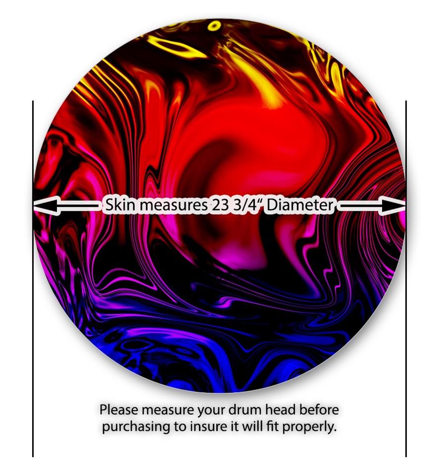 This design also available in other sizes. WraptorSkinz® skin wraps compatible with most kick drum heads. Printed using superb photo quality designs and vibrant colors printed with special fade resistant inks that last even in direct sun for years. WraptorSkinz are a composite three layer commercial grade materials vinyl. The bottom layer is a air release, grey block out removable adhesive that hides existing graphics on the drum head and is easily applied without air bubbles. The middle layer is a flexible vinyl printed with UV protected, fade resistant inks that deliver superb photo quality designs in vibrant colors. Finally, we bond a professional grade laminate over the entire skin adding a glossy protective finish.