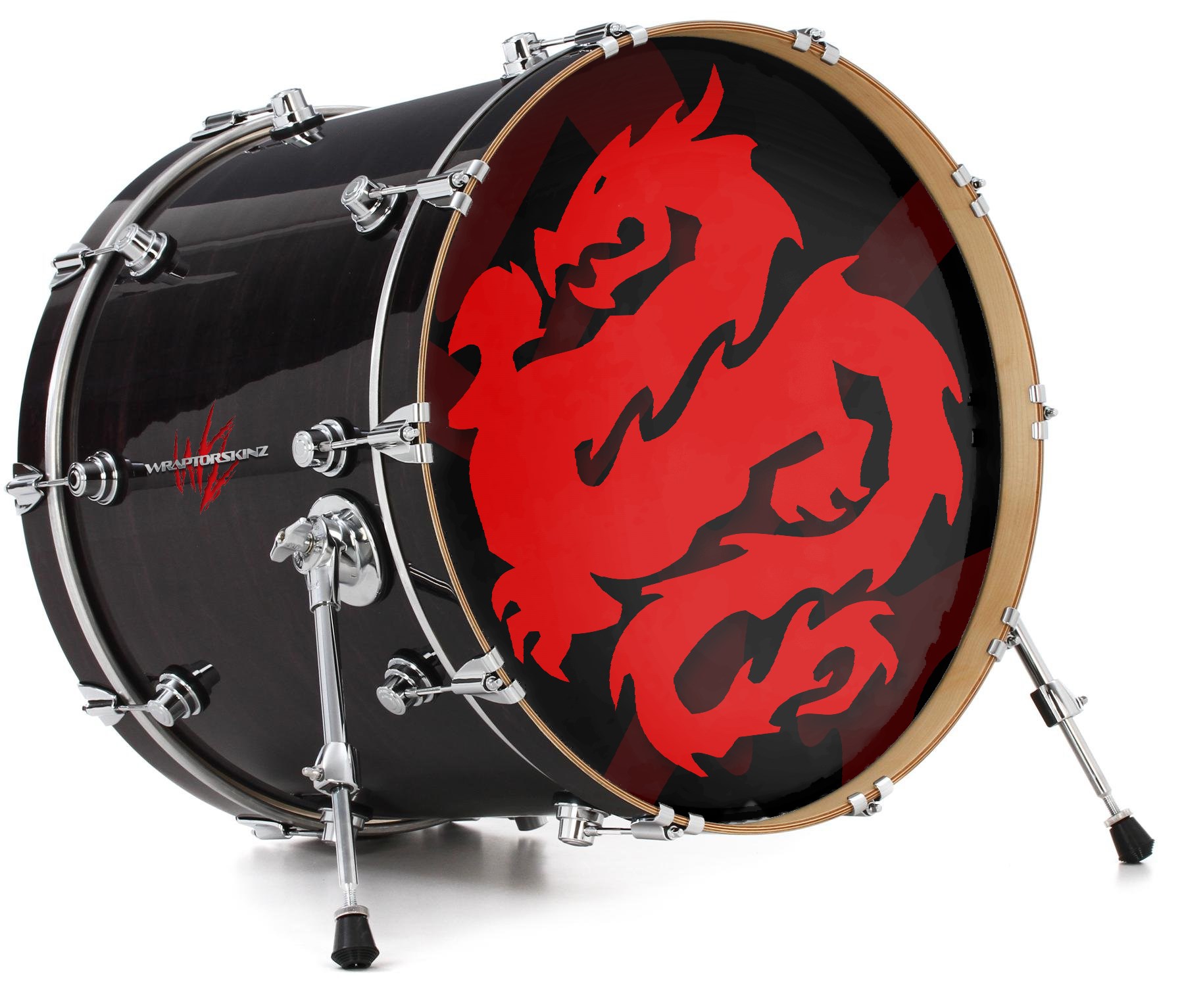 Decal Skin works with most 24" Bass Kick Drum Heads Oriental Dragon Red on Black - DRUM HEAD NOT INCLUDED
